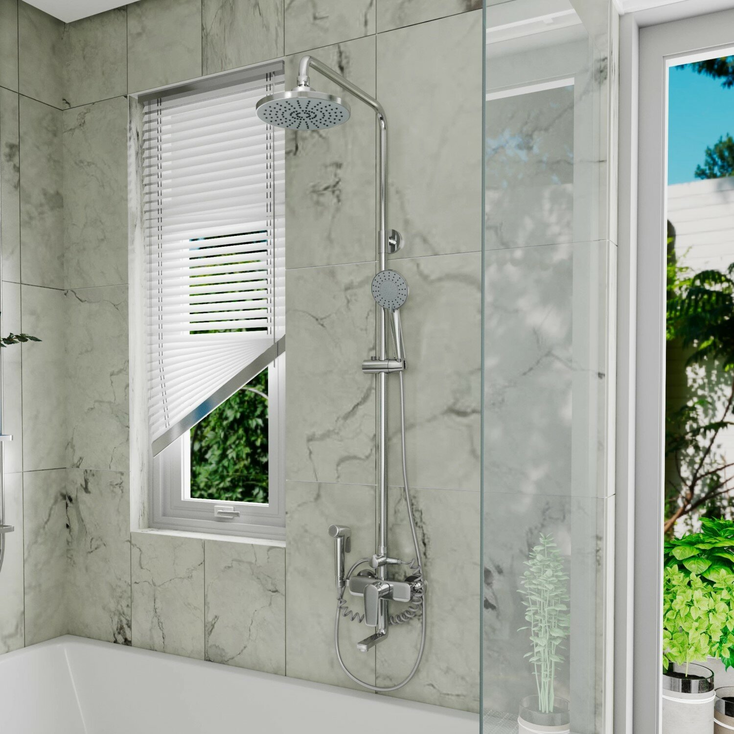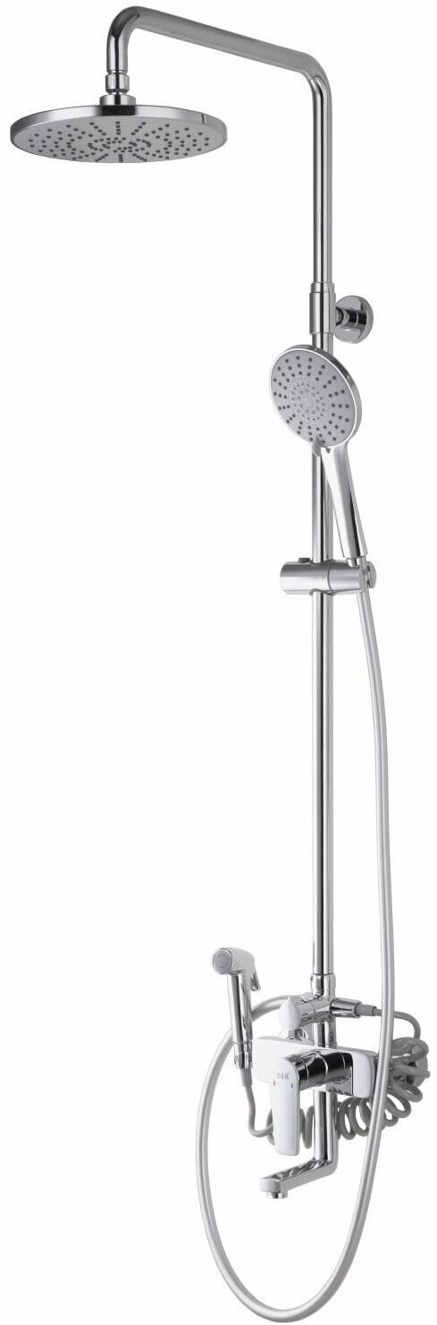 | ВКоробке | Душевая стойка - 1 шт. Верхний душ - 1 шт. Лейка - 1 шт. Шланг - 1 шт. Смеситель - 1 шт. Гигиенический душ - 1 шт. Эксцентрик - 2 шт. Инструкция - 1 шт. |