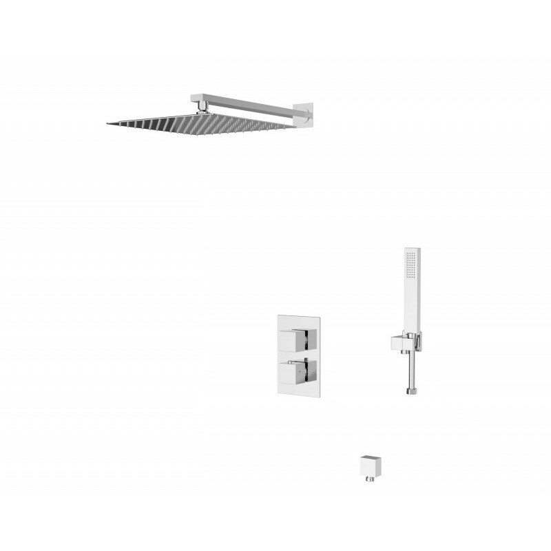 Душевой набор термостатический. В комплект поставки входит: смеситель, встраиваемая часть: блок, держатель ручного душа, ручная лейка, держатель верхнего душа, тропический верхний душ, душевой шланг, паспорт