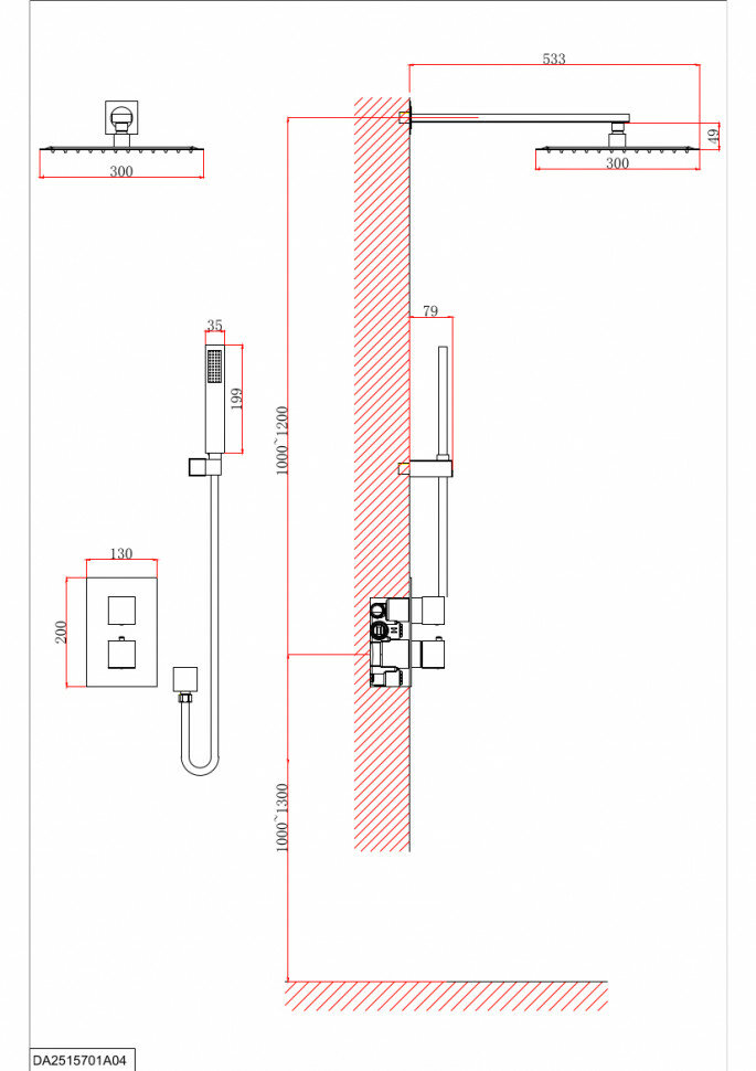 | Размер верхнего душа, мм | 300 |