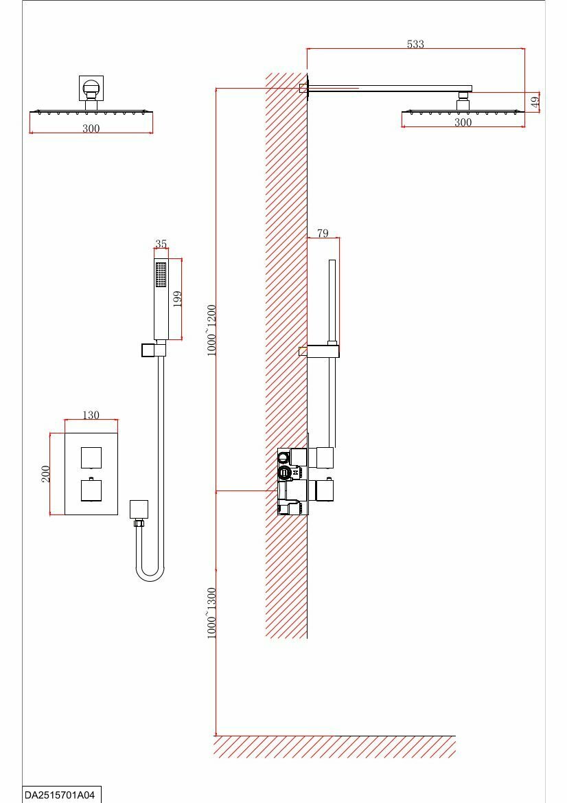 - Форма верхнего душа: квадратная.