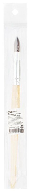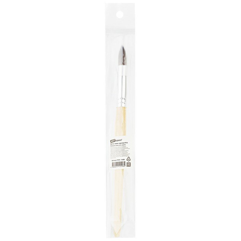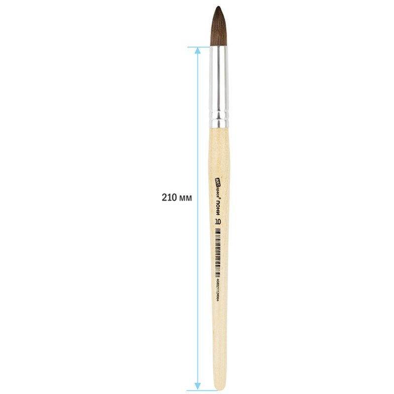 Художественные кисти ArtSpace изготовлены из волоса пони. Он несколько толще, чем у белки, расстояние между волосками больше, поэтому воду такая кисточка набирает меньше, чем из белки или колонка. Приобретают форму конуса, не слишком упруги. Кисть круглой формы с короткой ручкой из дерева идеальна для начинающих художников, поэтому её часто используют в детских образовательных учреждениях.