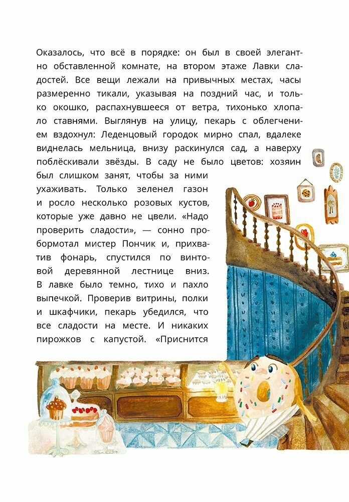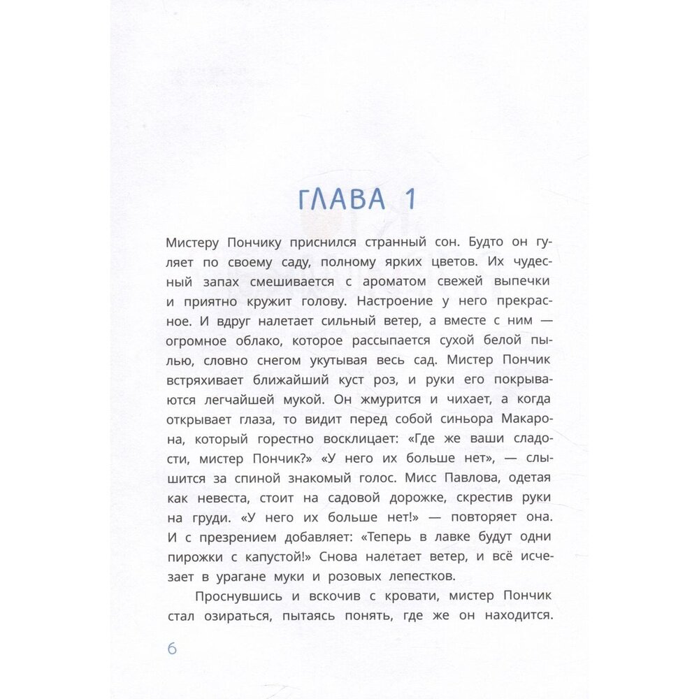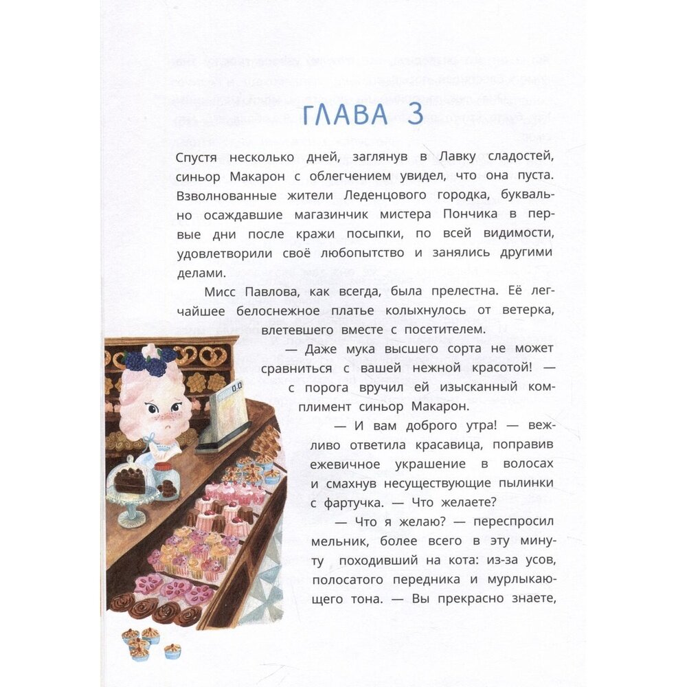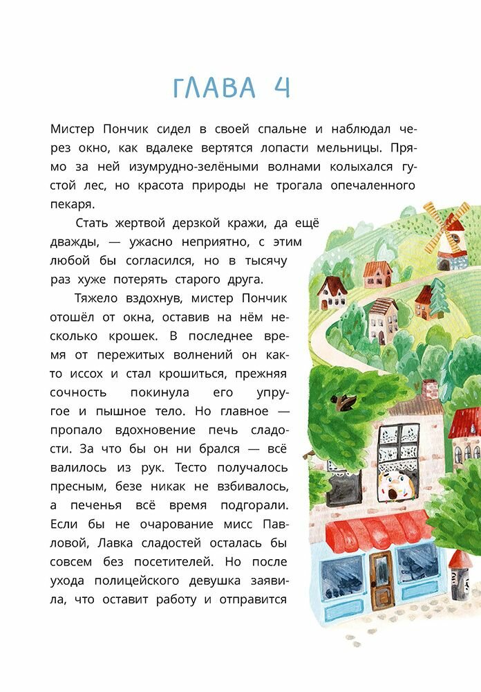 А ещё дети разгадывают тайну пропажи древней кулинарной книги. Лавка со старинным портретом, ветряная мельница, заброшенный сад, городской шоколадный фонтан - куда только поиски не заводят главных героев и их друзей - влюблённого мельника, красавицу мисс Павлову и полицейского, Старого Сухаря. И вдобавок ко всему им строит козни чужестранец Багет Гет, который хочет найти книгу первым! Для младшего школьного возраста.