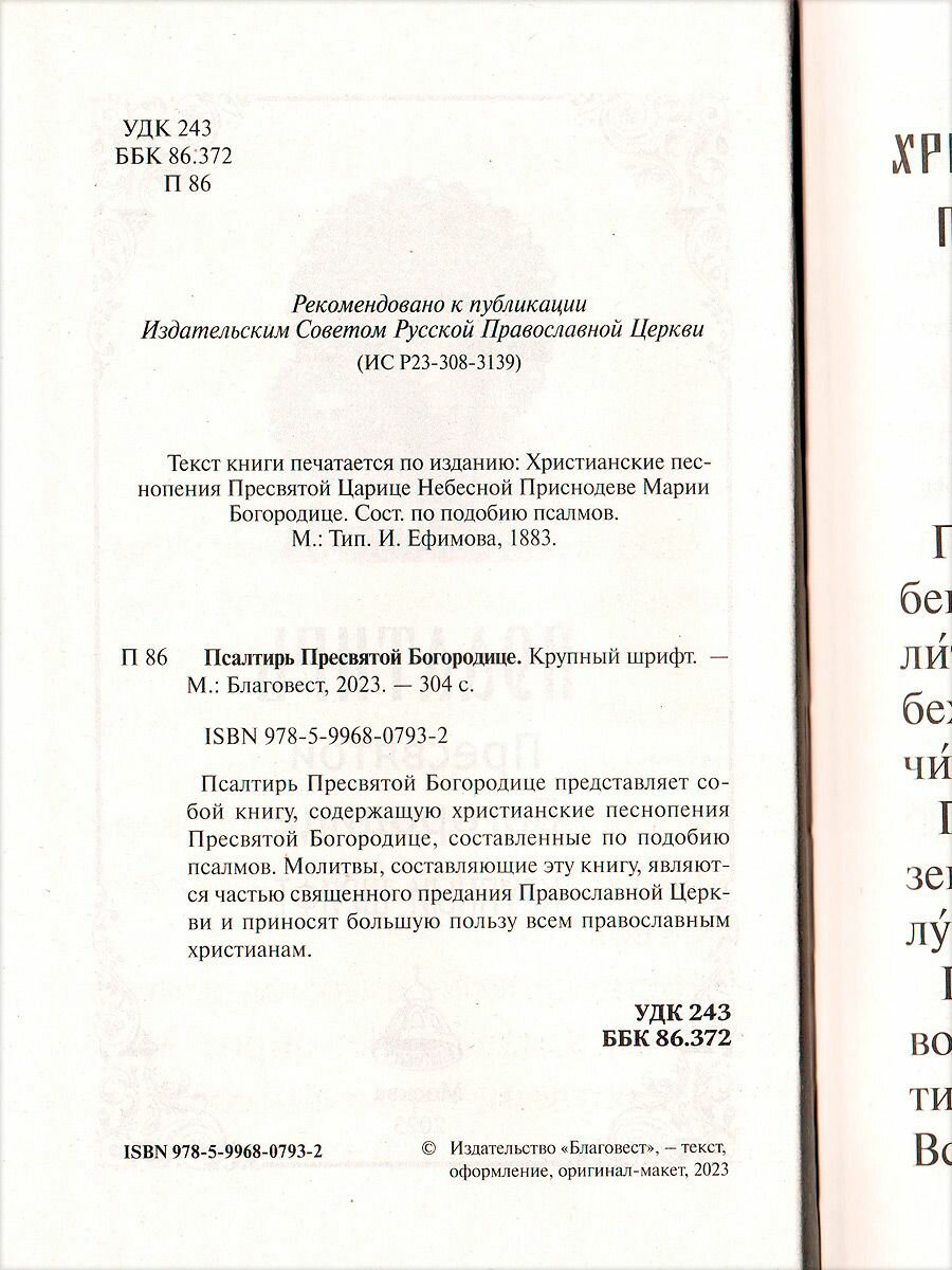 Псалтирь Пресвятой Богородице. Крупный шрифт (Не указан); Благовест, 2023
