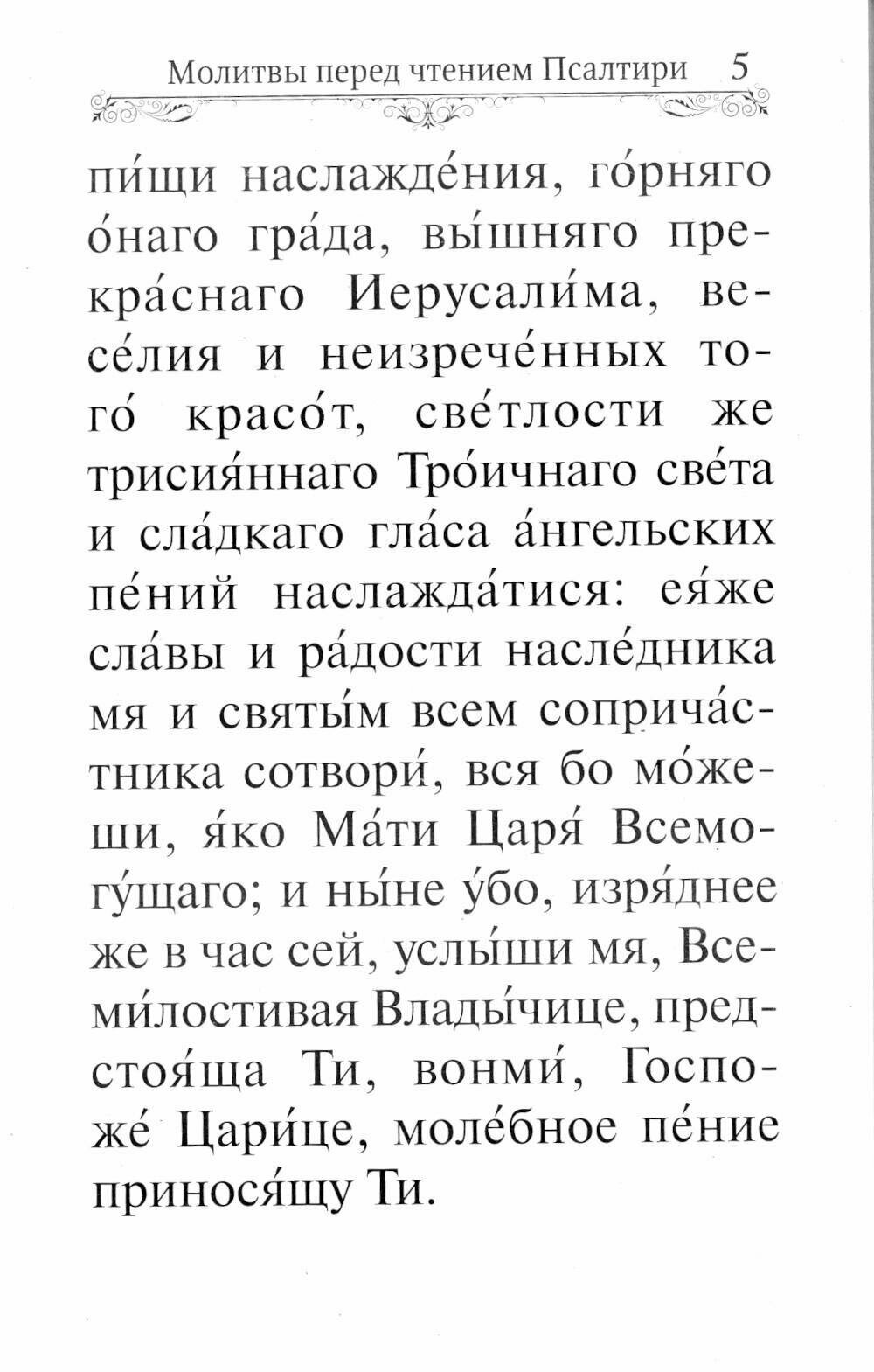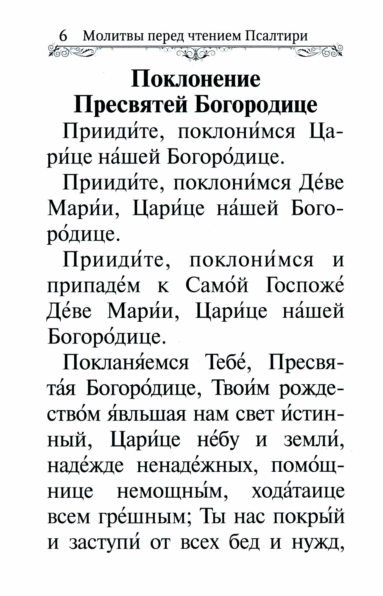 Псалтирь Пресвятой Богородице представляет собой книгу, содержащую христианские песнопения Пресвятой Богородице, составленные по подобию псалмов. Молитвы, составляющие эту книгу, являются частью священного предания Православной Церкви и приносят большую пользу всем православным христианам.