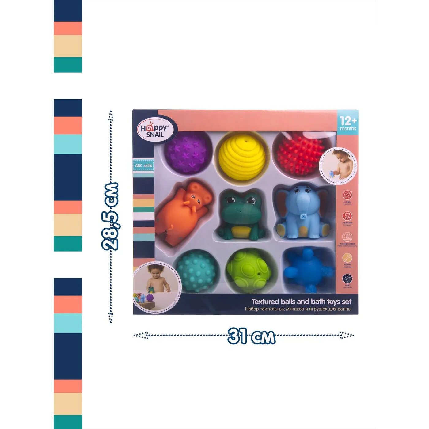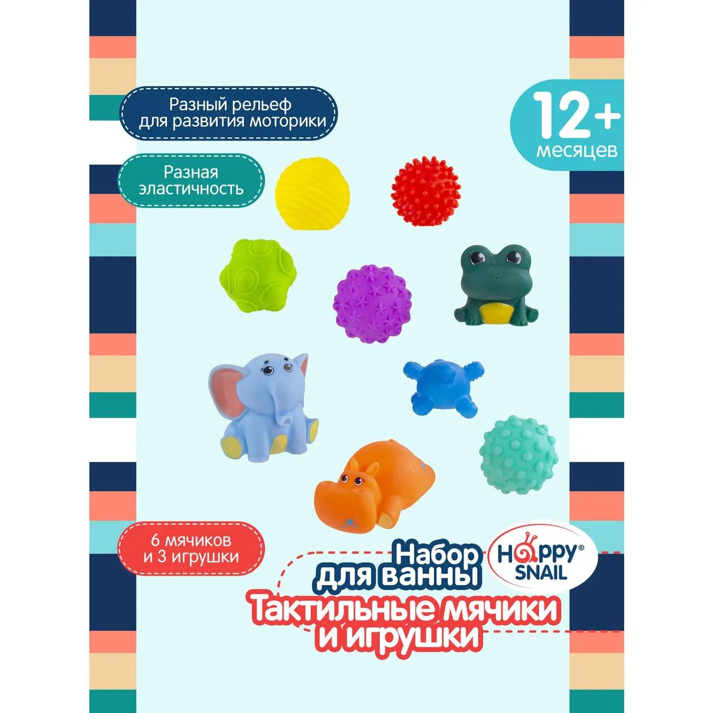 Набор тактильных мячиков и игрушек для ванны Happy Snail 9 шт