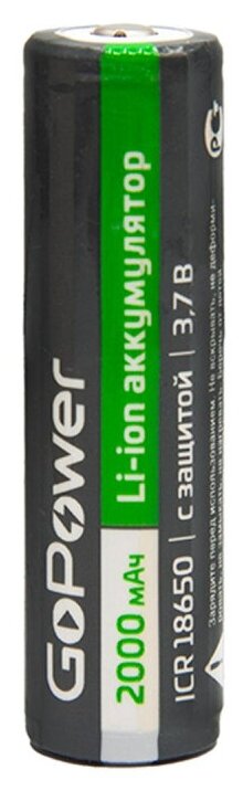 Литий-ионный (Li-ion) аккумулятор GoPower размера 18650Номинальная ёмкость аккумуляторной батареи 2000mAh, номинальное напряжение батареи 3.7V. Литий – ионные аккумуляторные батарейки перезаряжаемы, что позволит сэкономить деньги и не навредят окружающей среде. Аккумуляторные батарейки GoPower производятся по улучшенной технологии с использованием премиальных компонентов. Литий-ионные аккумуляторные батарейки (Li-ion) на сегодняшней день являются одни из самых распространенных. Фотоаппараты, смартфоны, видеокамеры, электроинструменты, детские игрушки – это лишь небольшая часть списка предметов, в которых используется этот источник питания.