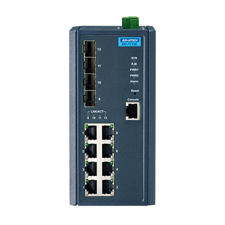 Управляемый коммутатор EKI-7712E-4F-AE Advantech Ethernet 8 портов RJ-45 4 порта Gigabit SFP металлический корпус IP30