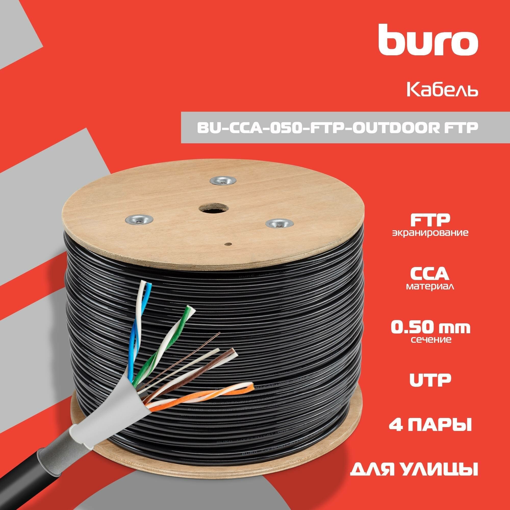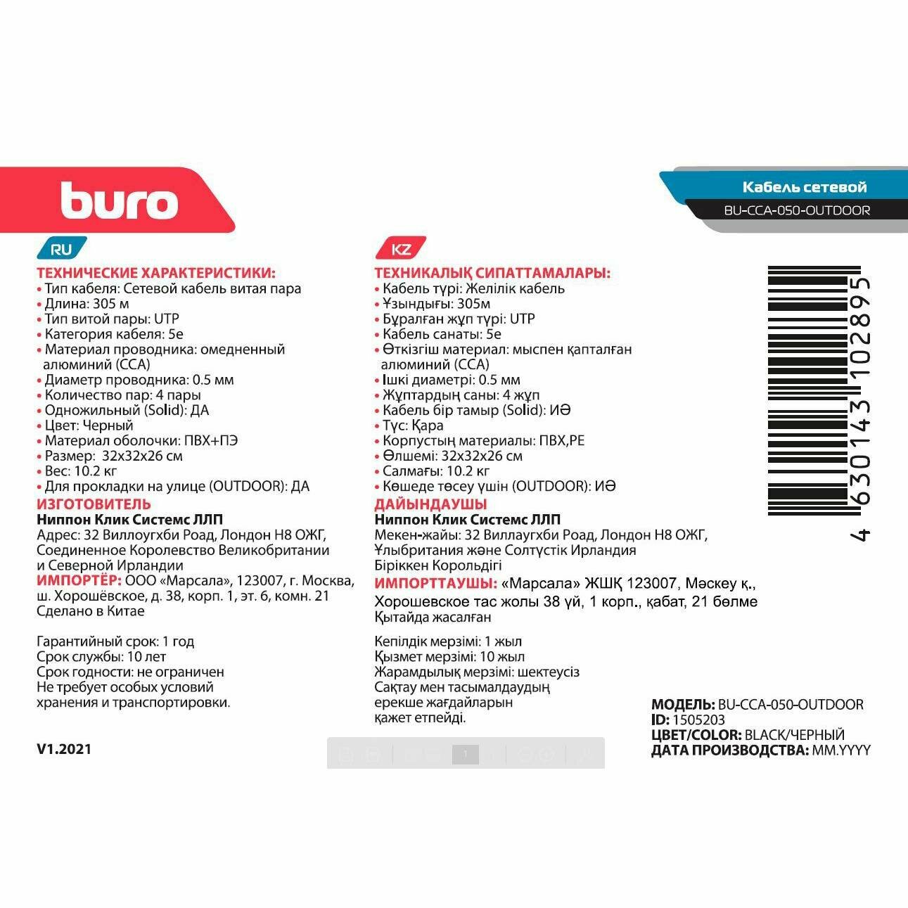 Кабель сетевой Buro UTP 4 пары cat5E solid 0.50мм CCA 305м черный outdoor