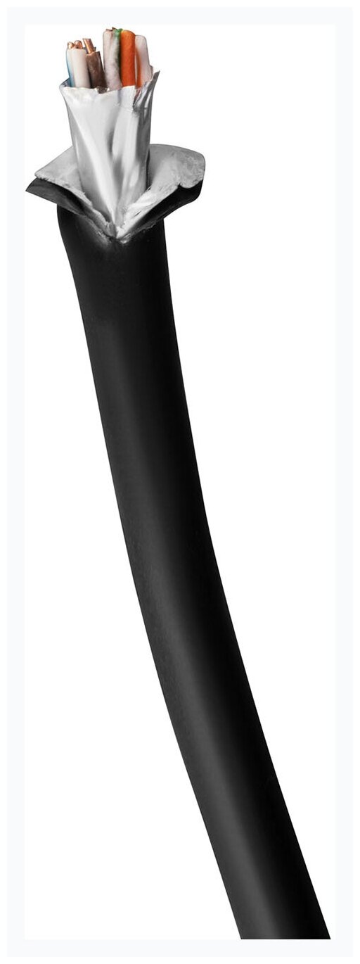 Прочно сделан, тянули через отверстие в стене, не деформировался. в катушке находится аккуратно скрученным, и не перепутанным. обжимается плотно и легко. прокладывали этот кабель в серверной, по всему этажу, двух таких катушек хватило .. немного осталось .. итого использовали 610 м кабеля.