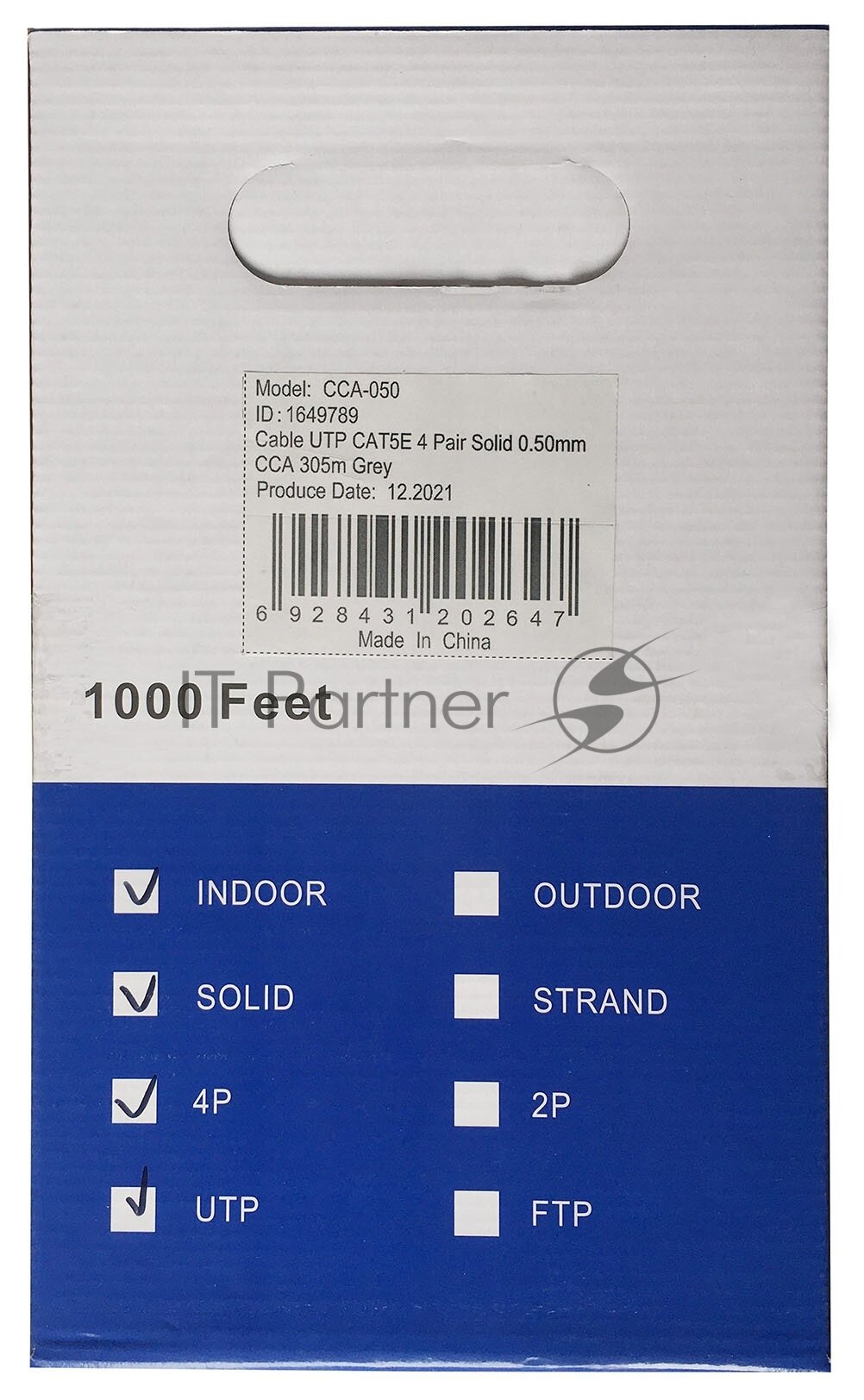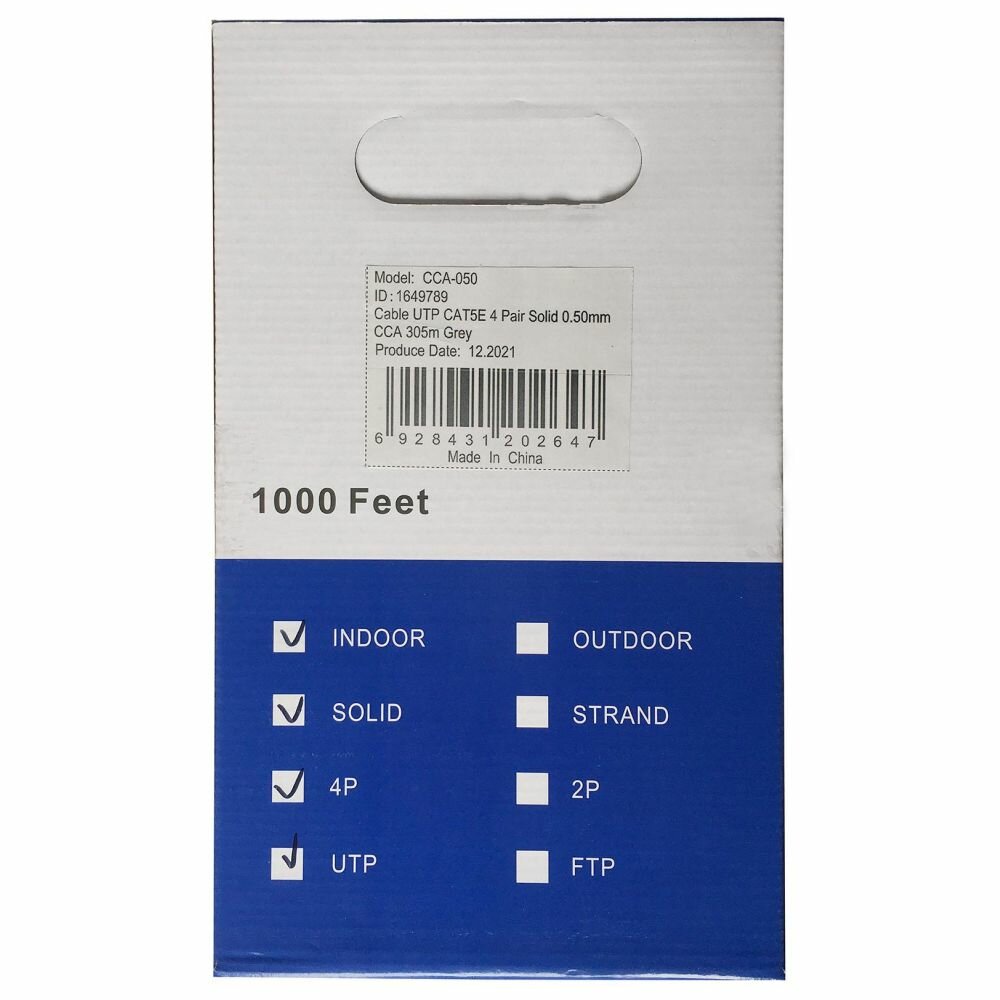 Кабель сетевой Ningbo UTP 4 пары cat5E solid 0.5мм CCA molded 305м серый 1649789