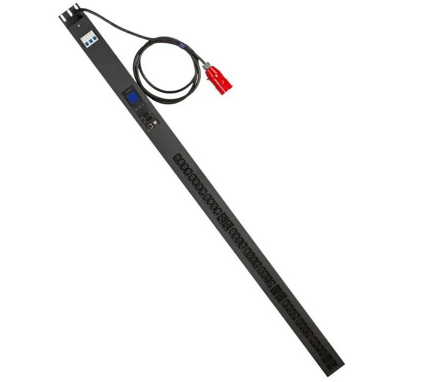 Блок оснащен встроенным кабелем питания с трехфазным разъемом IEC309 и комбинированным набором розеток C19 и C13.