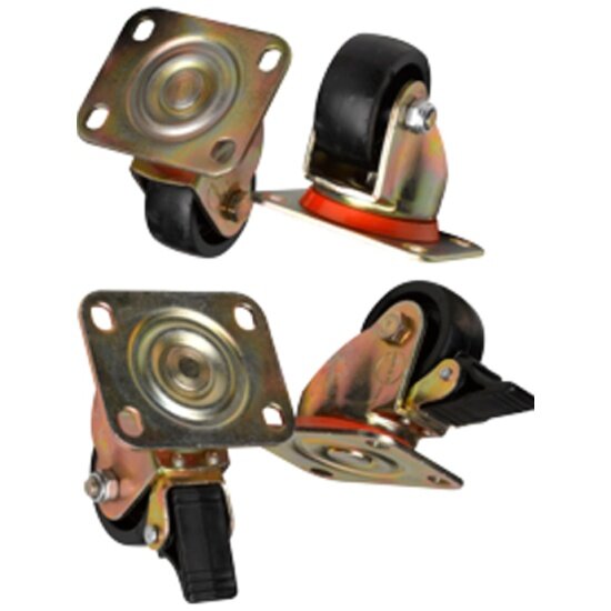 LANDE Ролики для напольных шкафов LANDE, комплект 4 шт (2 с тормозом, 2 без тормоза), крепление на винтах, нагрузка 250 кг на ролик