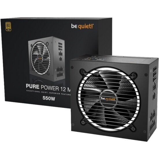 be quiet! Pure Power 12 M представляет собой блок питания мощностью 550 Вт с сертификацией 80 Plus Gold. Модель имеет полностью модульную систему, а ключевой особенностью является очень тихая работа кулера.