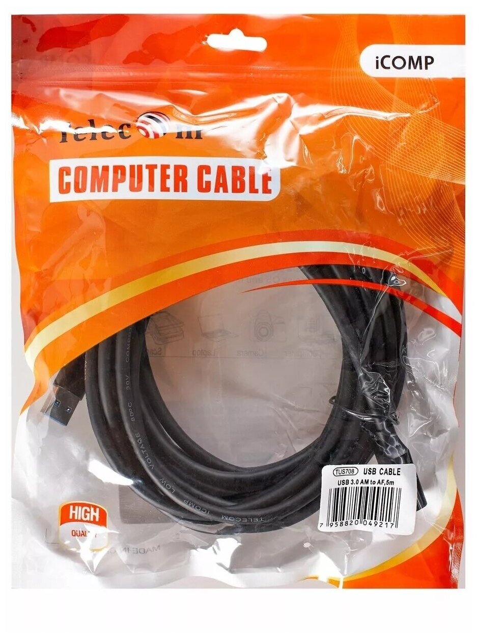 Кабель удлинительный USB3.0 Am-Af 5m Telecom черный (TUS708-5M)