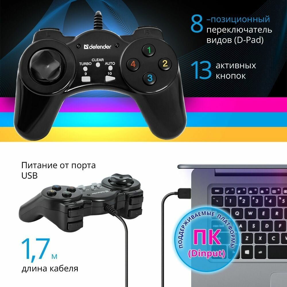 Проводной геймпад Vortex USB 13 кнопок DEFENDER (642491)