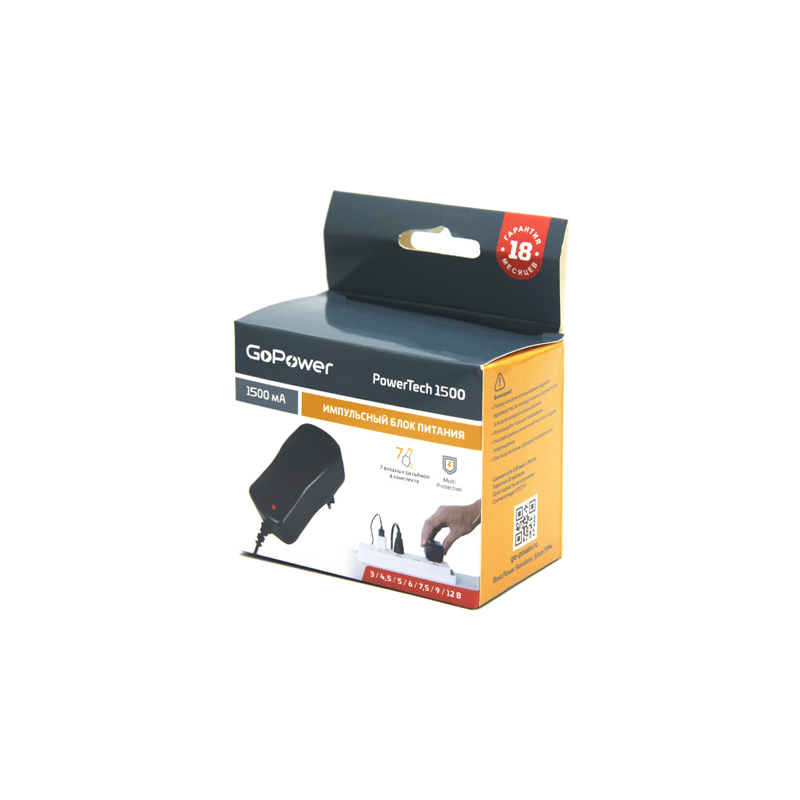 Универсальный импульсный блок питания 1500мА - Выходное напряжение устанавливается переключателем: 3,0 / 4,5/ 5,0/ 6,0 / 7,5 / 9,0 / 12,0 В DC - Максимальный ток 1500 мА - 7 входных разъемов в комплекте: благодаря набору из 7 наиболее распространенных входных разъемов и выбору полярности блоки питания совместимы с большим количеством современных электроприборов и устройств - Технология «Multi Protection»: защита от короткого замыкания и перегрузок - Светодиодная индикация