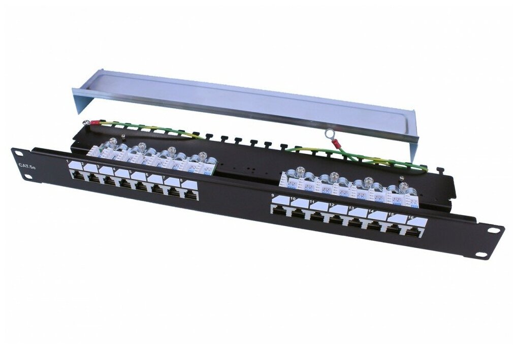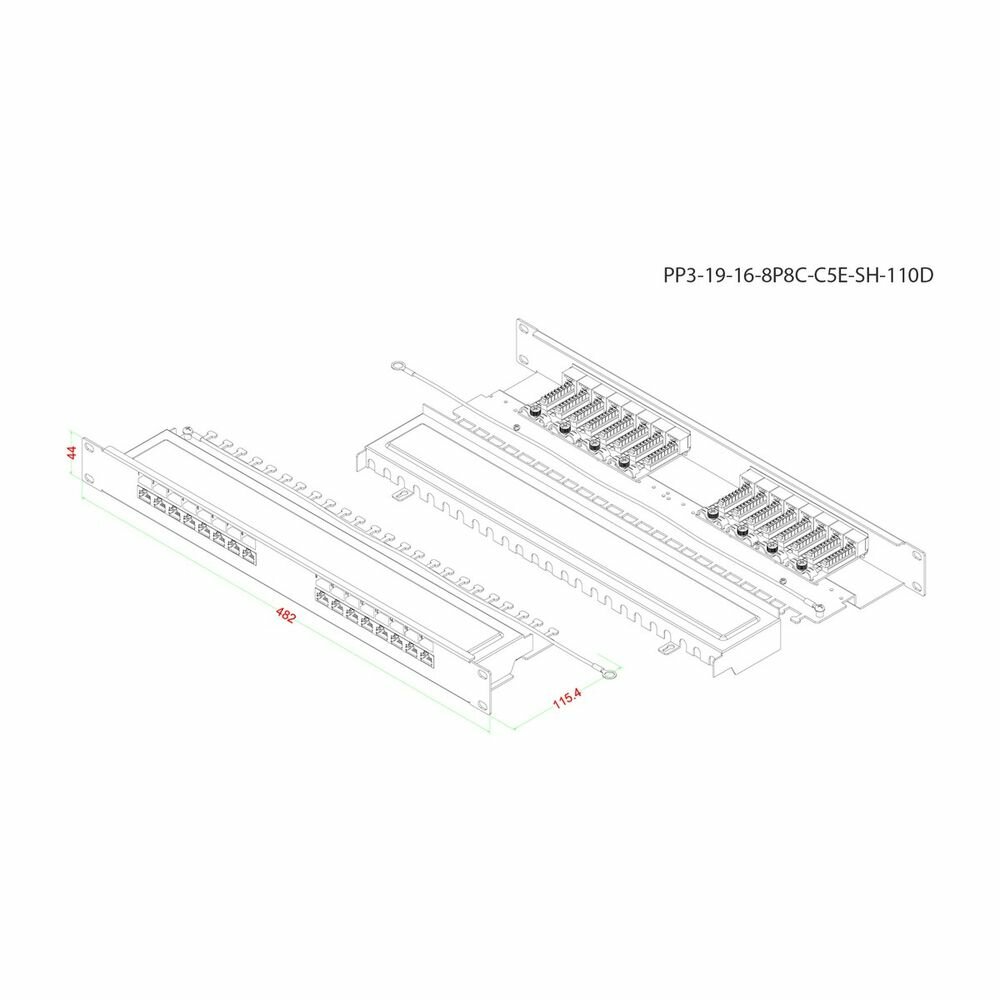 Патч-панель Hyperline PP3-19-16-8P8C-C5E-SH-110D 19" 1U 16xRJ45 кат.5e UTP
