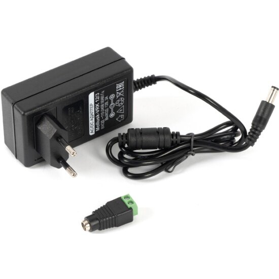 12В, 3А. Напряжение питающей сети 110-245 В переменного тока. Защита выхода от КЗ. Пластиковый корпус IP20. Подключение питания - сетевая вилка, подключение нагрузки - штекер 5,5х2,1 мм, переходник на клеммы в комплекте. Габаритные размеры - 45х65х80 мм.