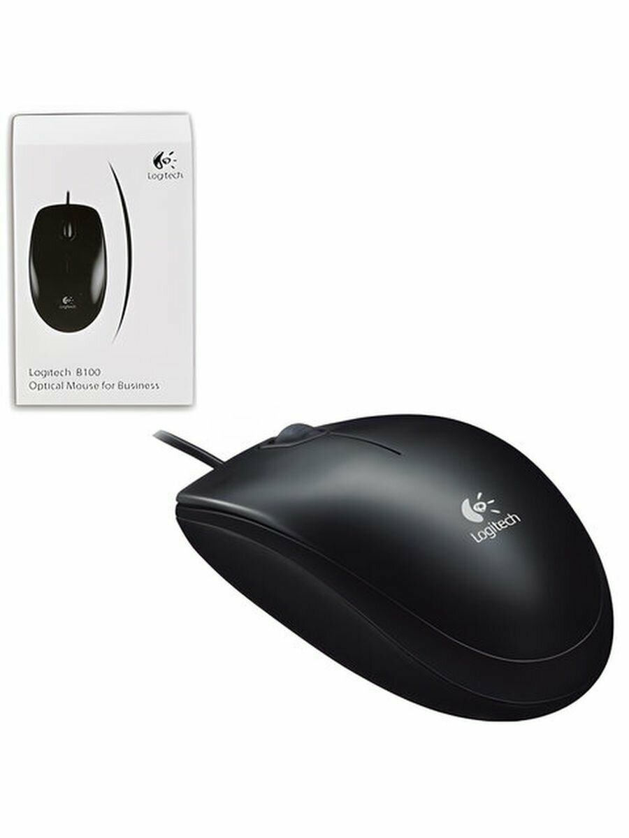 Мышь Logitech B100 Black (черная оптическая 800dpi USB 1.8м) (арт. 910-005547 M/N: M-U0026) B100 black (USB, оптическая, 800dpi, 2but) (910-0055477)