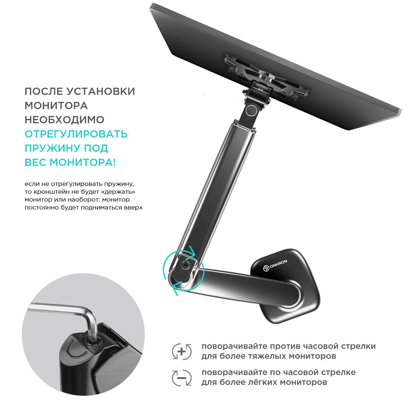 Механизм с газовой пружиной внутри корпуса кронштейна дает возможность легко и плавно перемещать монитор в любую нужную вам позицию, следуя за положением вашего тела во время работы за компьютером, максимально снижая нагрузку на зрение и позвоночник.