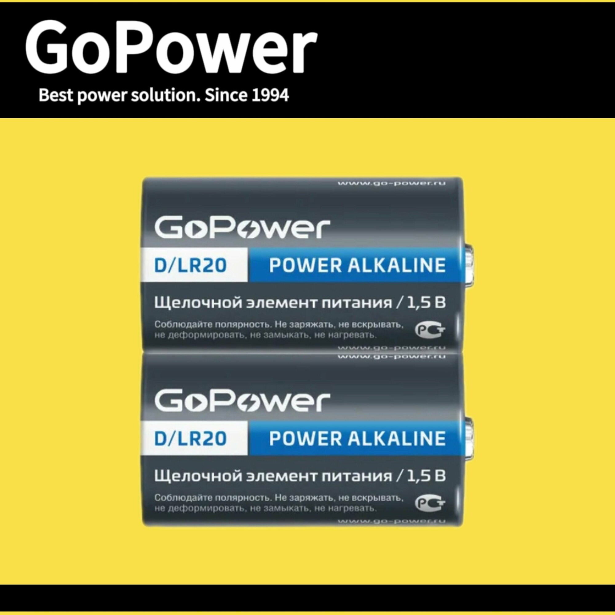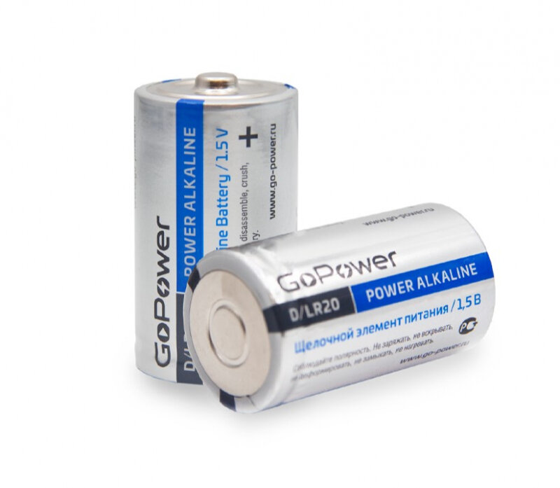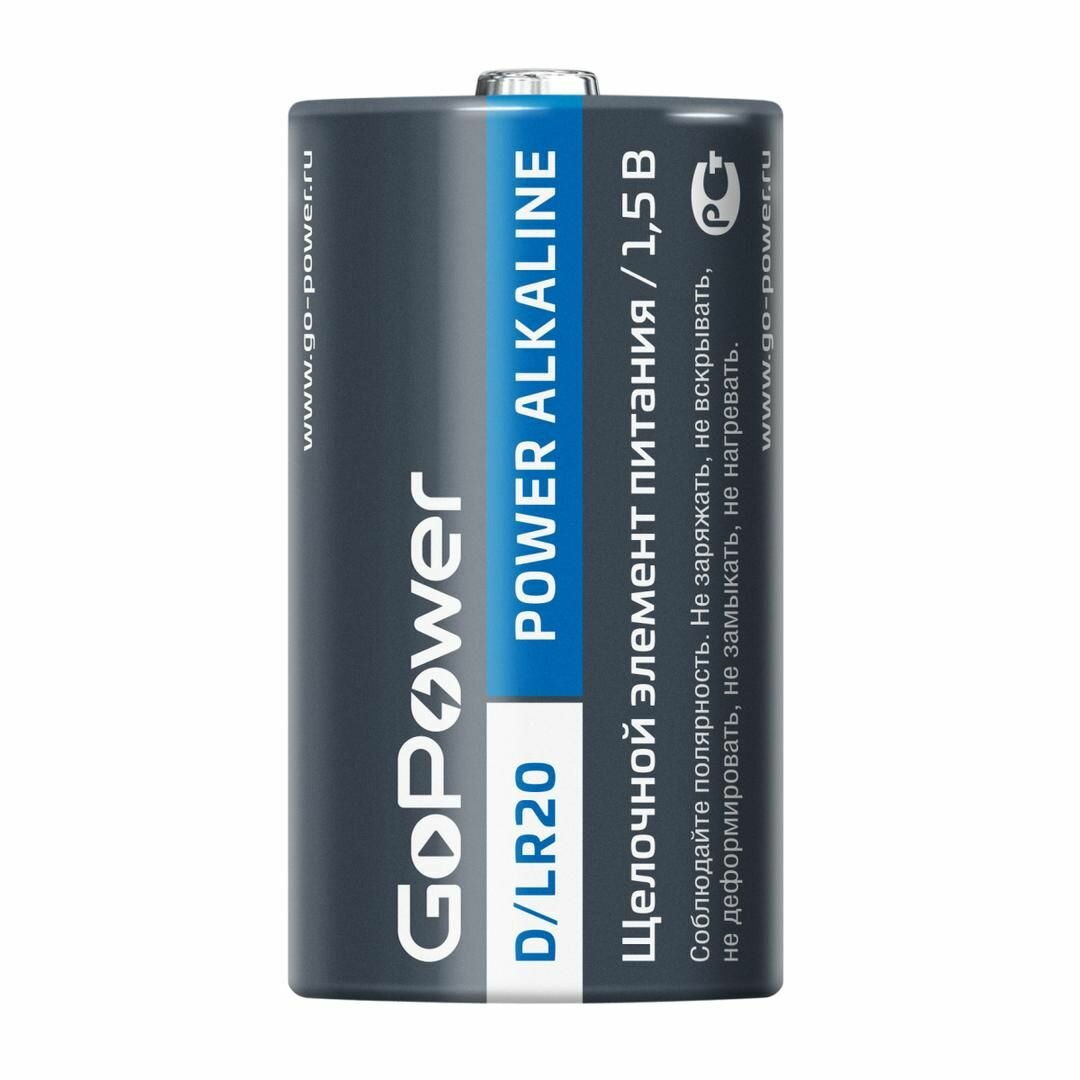 Батарейка GoPower LR20 D BL2 Alkaline 1.5V (2/12/96) блистер (2 шт.) Батарейка GoPower LR20 D (00-00017862)