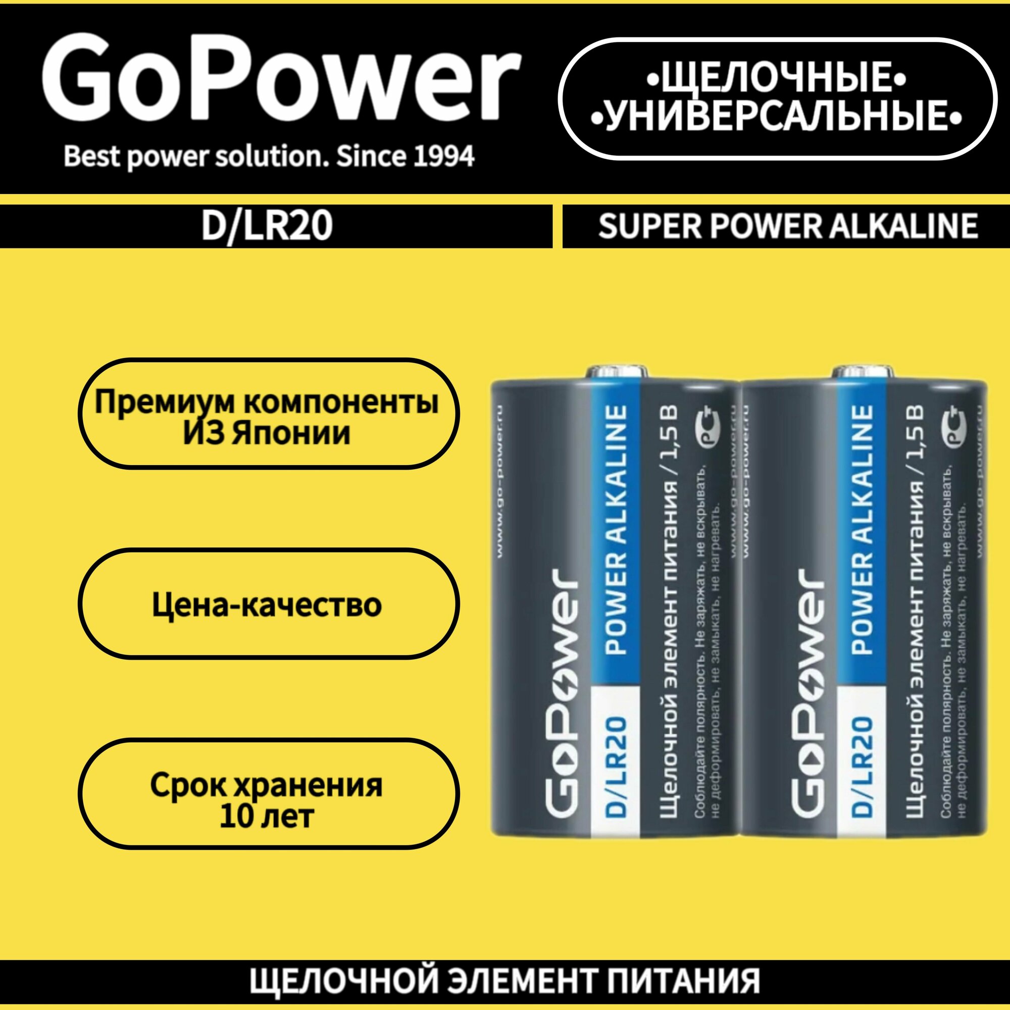 Щелочные батарейки GoPower серии SUPER POWER ALKALINE универсального назначения, они идеально подходят для большинства современных устройств. Благодаря улучшенной формуле эти элементы питания работают дольше.