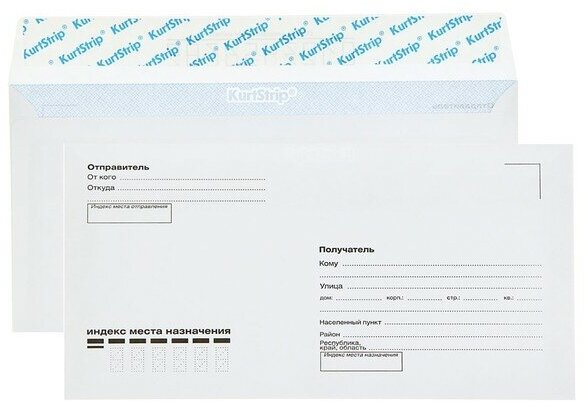 Конверт Бюрократ Е65.15 E65 110x220мм "Куда-Кому" белый силиконовая лента 80г/м2 (pack:1000pcs)