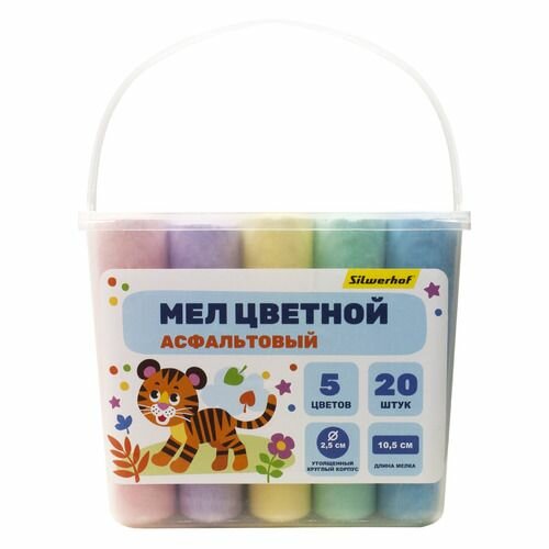 Мел цветной Silwerhof Веселые друзья асфальт. 5цв. (20шт) круглый пластик.ведро