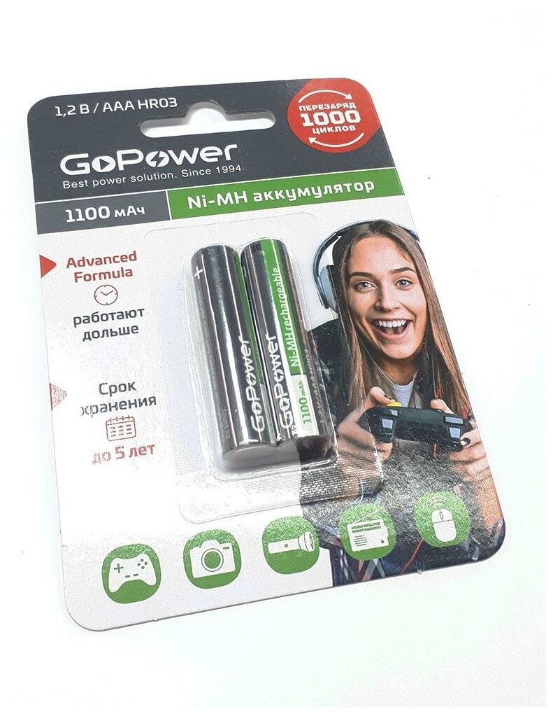 Аккумулятор бытовой GoPower HR03 AAA BL2 NI-MH 1100mAh (2/20/320) блистер (2 шт.) Аккумулятор бытовой GoPower HR03 AAA (00-00015316)