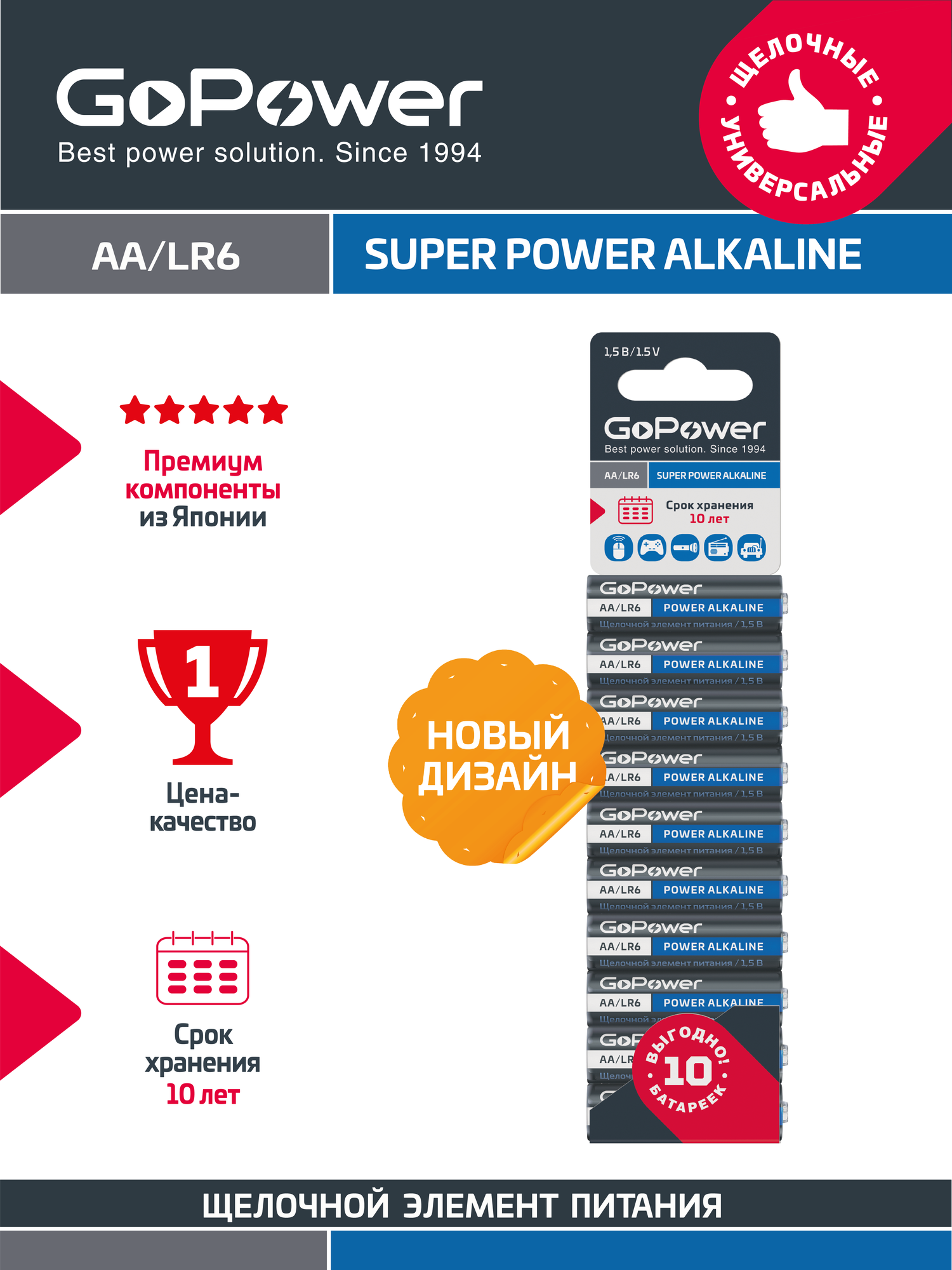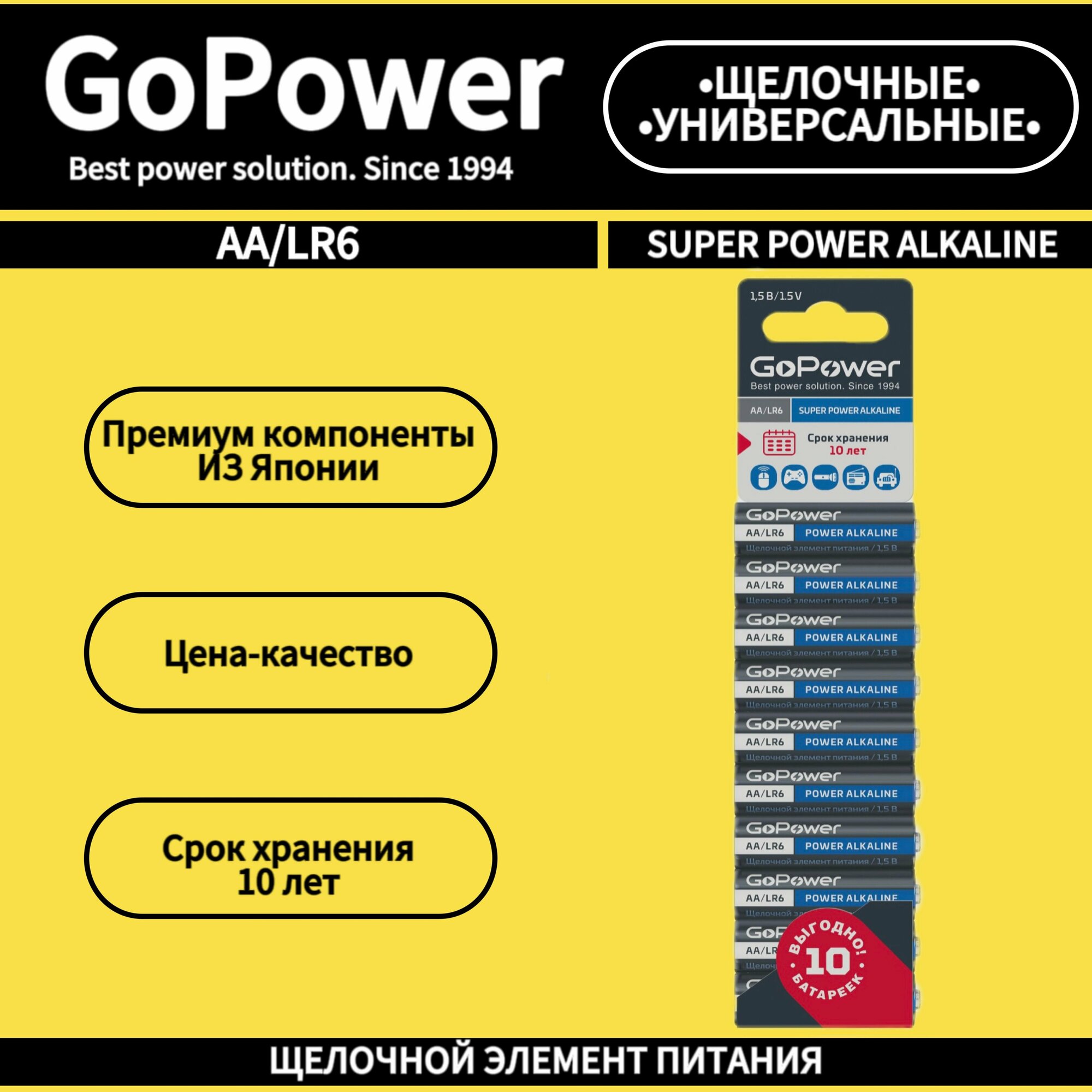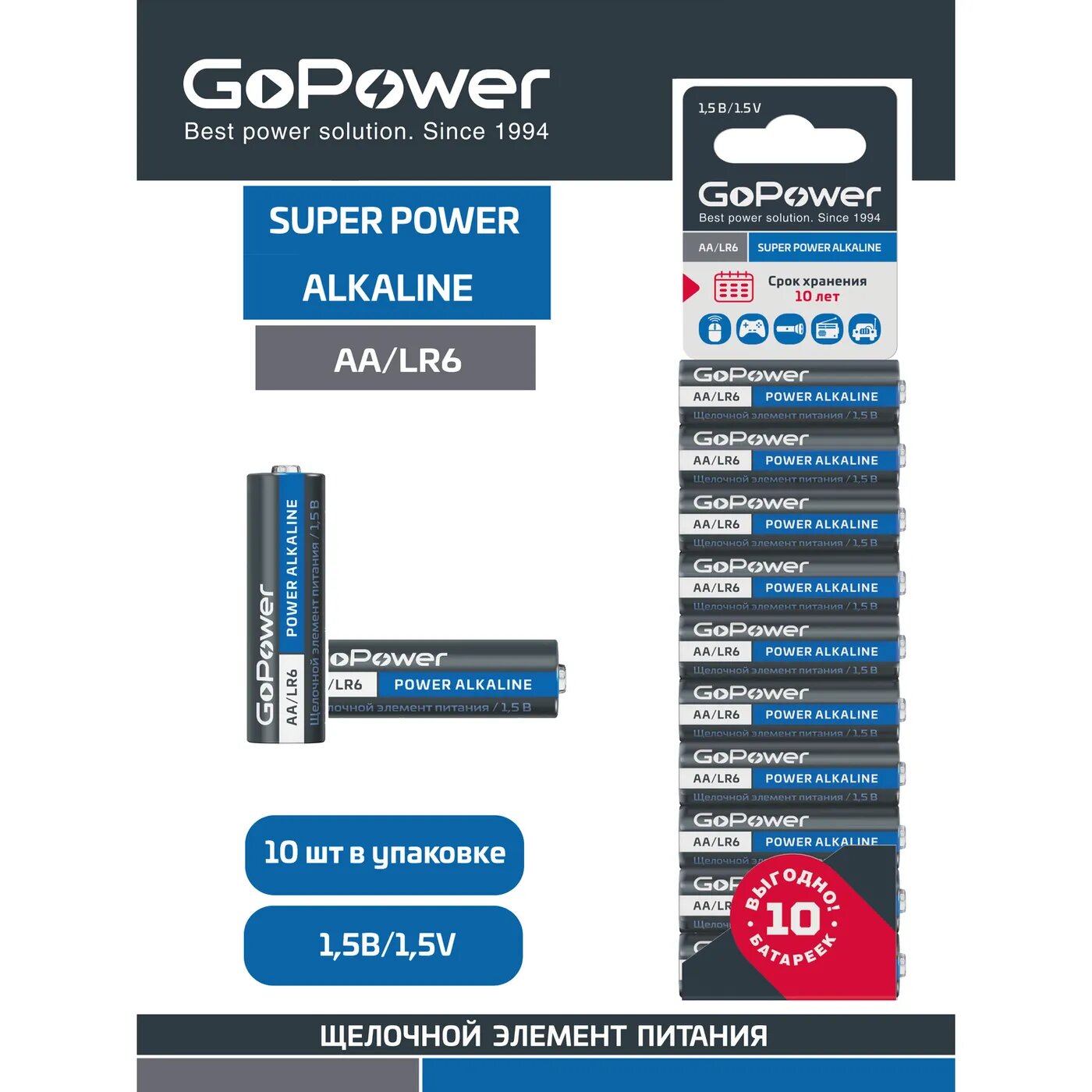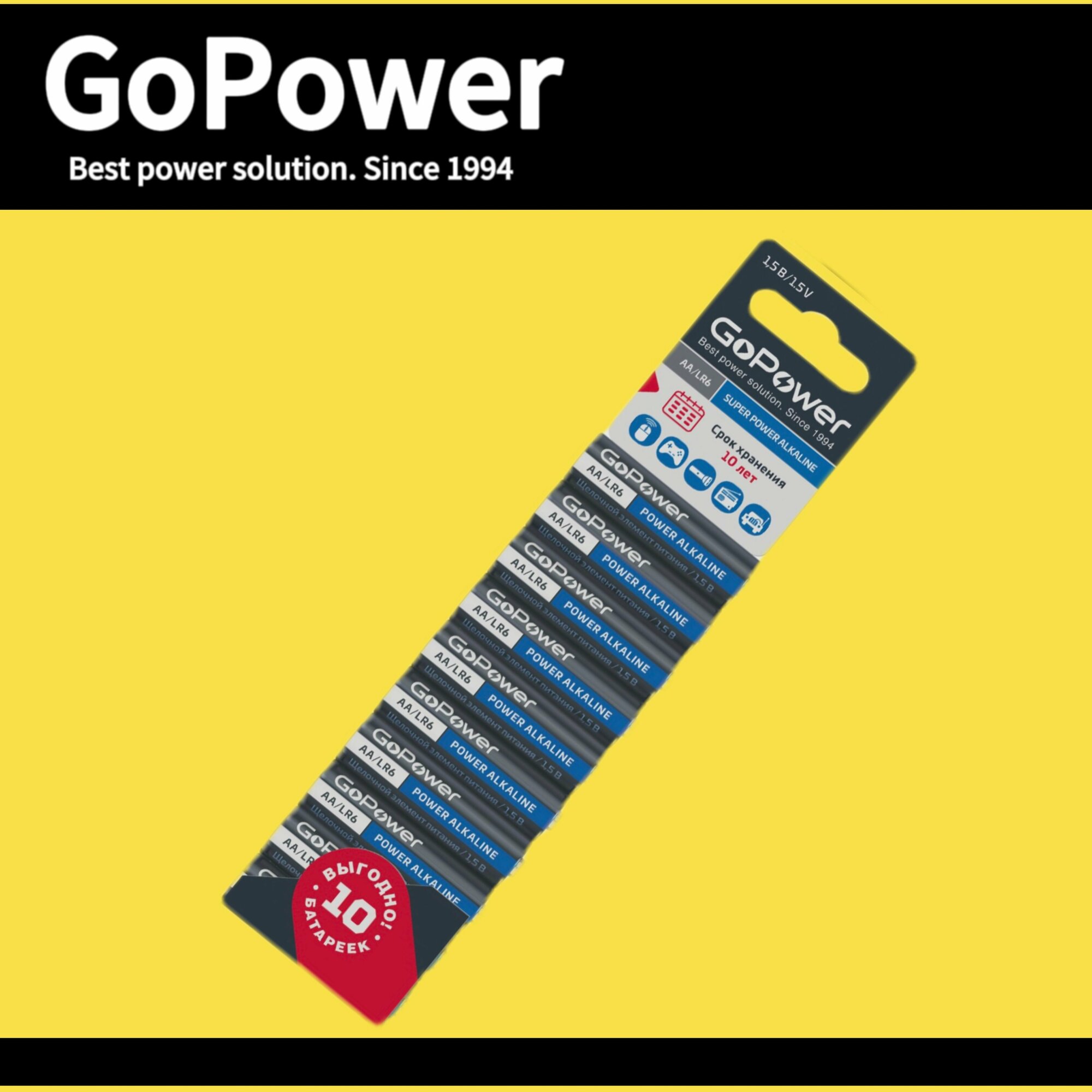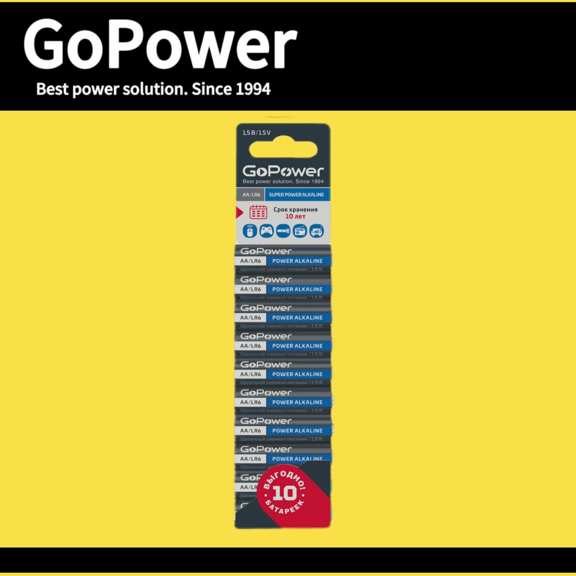 Батарейка GoPower LR6 AA BL10 Alkaline 1.5V (10/60/360) блистер (10 шт.) Батарейка GoPower LR6 AA (00-00019863)
