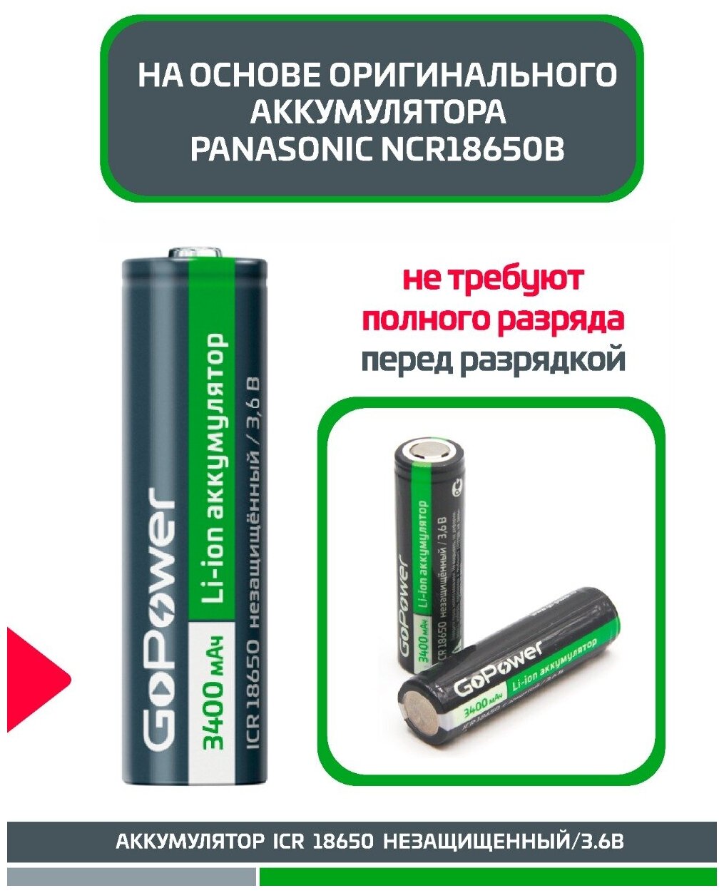 Аккумулятор 3400 mAh GoPower NCR18650B 18650 1 шт