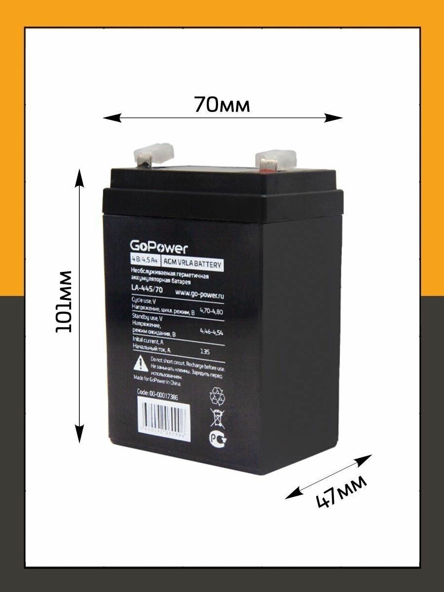 Аккумулятор свинцово-кислотный GoPower LA-445/70 4V 4.5Ah (1/20) GoPower 00-00017386