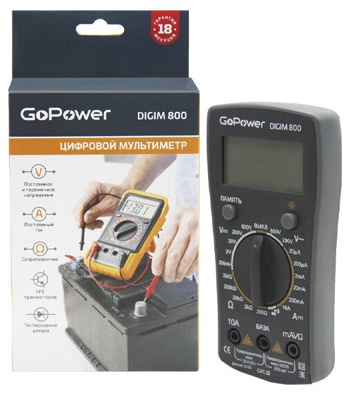 Мультиметр GoPower DigiM 800 (1/80) Мультиметр GoPower DigiM 800 (00-00015326)