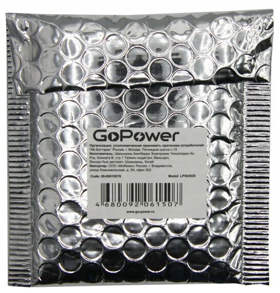 Аккумулятор Li-Pol GoPower LP502035 PK1 3.7V 300mAh (1/10/250) Аккумулятор Li-Pol GoPower LP502035 (00-00019578) Li-Pol LP502035