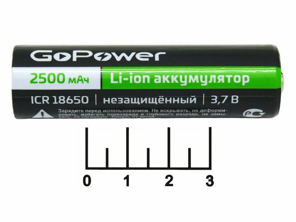 Литий-ионный (Li-ion) аккумулятор GoPower размера 18650.Номинальная ёмкость аккумуляторной батареи 2500mAh, номинальное напряжение батареи 3.7V. Литий – ионные аккумуляторные батарейки перезаряжаемы, что позволит сэкономить деньги и не навредят окружающей среде. Аккумуляторные батарейки GoPower производятся по улучшенной технологии с использованием премиальных компонентов. Литий-ионные аккумуляторные батарейки (Li-ion) на сегодняшней день являются одни из самых распространенных. Фотоаппараты, смартфоны, видеокамеры, электроинструменты, детские игрушки – это лишь небольшая часть списка предметов, в которых используется этот источник питания.