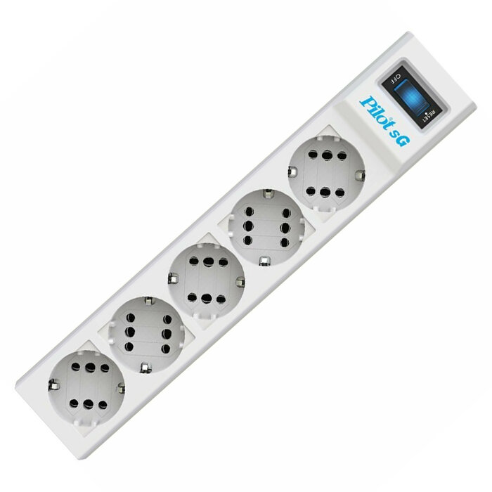 Сетевой фильтр Pilot sG, создан на базе Pilot S, с оригинальной конструкцией розеток, формата Gadget Parking. Это позволяет подключить к изделию с 5-ю розетками до 10 различных потребителей. Сетевой фильтр Pilot sG, обеспечивает необходимые функции защиты бытовой и офисной техники от импульсных помех, возникающих в электросети. Сетевой фильтр Pilot sG снабжен защитой от импульсных помех и грозового разряда, имеет защиту от перегрузки, тока короткого замыкания и критического повышения температуры внутри корпуса. Корпус выполнен из прочного трудногорючего пластика, контактные шины выполнены из специального гибкого металла, обеспечивающего плотный контакт с вилкой. Сетевой фильтр Pilot sG отвечает всем требованиям российских стандартов в области электромагнитной совместимости и безопасности и может использоваться для подключения и защиты любой техники. Схема защиты сетевого фильтра Pilot sG включает в себя: варисторный ограничитель для защиты от импульсных скачков напряжения и грозовых разрядов; термопредохранитель для защиты от перегрева внутри корпуса; плавкий предохранитель для защиты от короткого замыкания; автоматический термобиметаллический предохранитель для защиты от перегрузки. Корпус изделия выполнен из ударопрочного трудногорючего пластика.