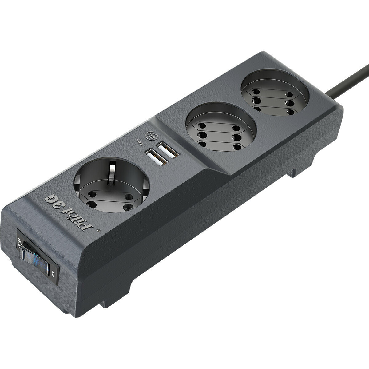 Сетевой фильтр Pilot 3G обеспечивает защиту от импульсной и вч-помехи, содержит розетки формата GP (Gadget Parking) и два разъема USB для зарядки гаджетов. Оригинальная форма корпуса позволяет компактно расположить сетевой фильтр на столе и подключить все приборы и гаджеты, необходимые для работы. Три розетки формата Gadget Parking позволяют подключить к изделию с 6 изделий с плоскими вилками. Два USB разъема позволяют быстро заряжать как гаджеты американского бренда, так и все остальные. Сетевой фильтр Pilot 3G снабжен защитой от перегрузки, тока короткого замыкания и защитой от критического повышения температуры внутри корпуса. Корпус выполнен из прочного трудногорючего пластика, контактные шины выполнены из специального металла, обеспечивающего плотный контакт с вилкой. Сетевой фильтр Pilot 3G отвечает всем требованиям российских стандартов в области электромагнитной совместимости и безопасности. Компактный корпус не загромождает пространство, поэтому он может располагаться на столе для подключения необходимой для работы техники и держать ВСЕ ПОД РУКОЙ.