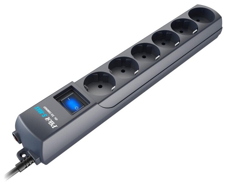Сетевой фильтр Pilot S Max (5 евро + 1GP) 15А/3.5кВа автомат 7 м графит ZIS Pilot S-Max (7 м 6 розеток) (Pilot S-Max 7M)
