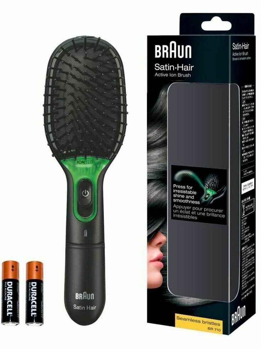 Braun BR710 – портативная расчёска с функцией ионизации, с помощью которой можно быстро и с минимальными усилиями сделать красивую укладку. Она снимает статическое электричество, обеспечивает безупречную гладкость волос и придаёт им здоровый, естественный блеск, а благодаря бесшовным зубцам без острых краёв уход за каждой прядью будет чрезвычайно бережным. Прибор обладает эргономичным дизайном и высокой степенью функциональности. Такую расческу можно не только взять с собой в отпуск, упаковав в чемодан, а без труда поместить и в женскую сумку.