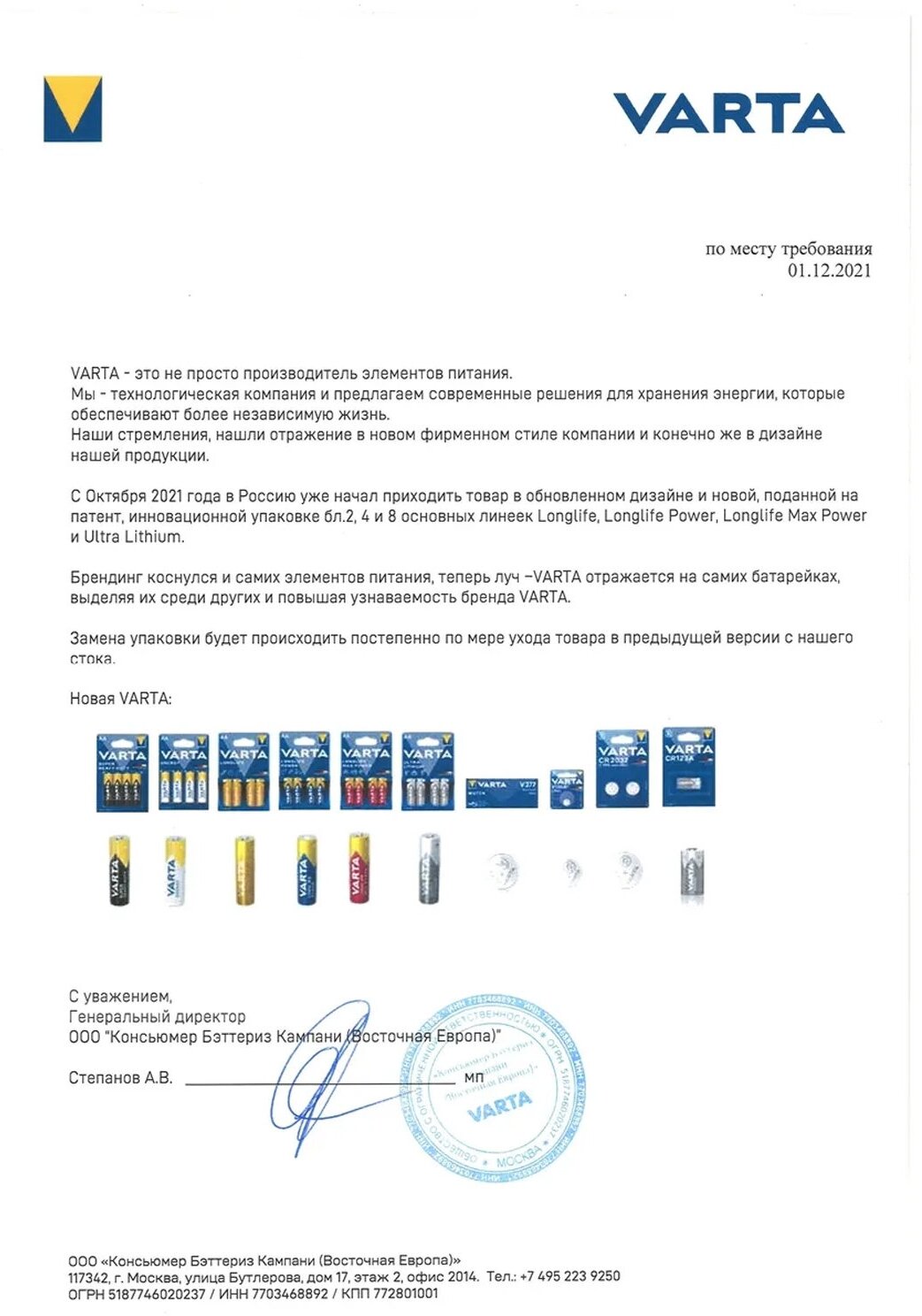 | Бренд | Varta |