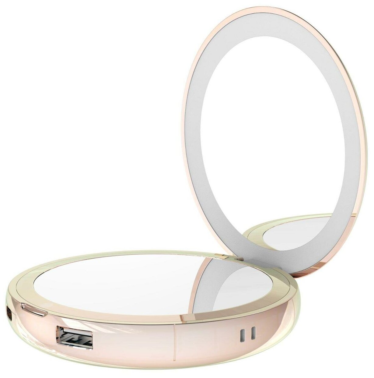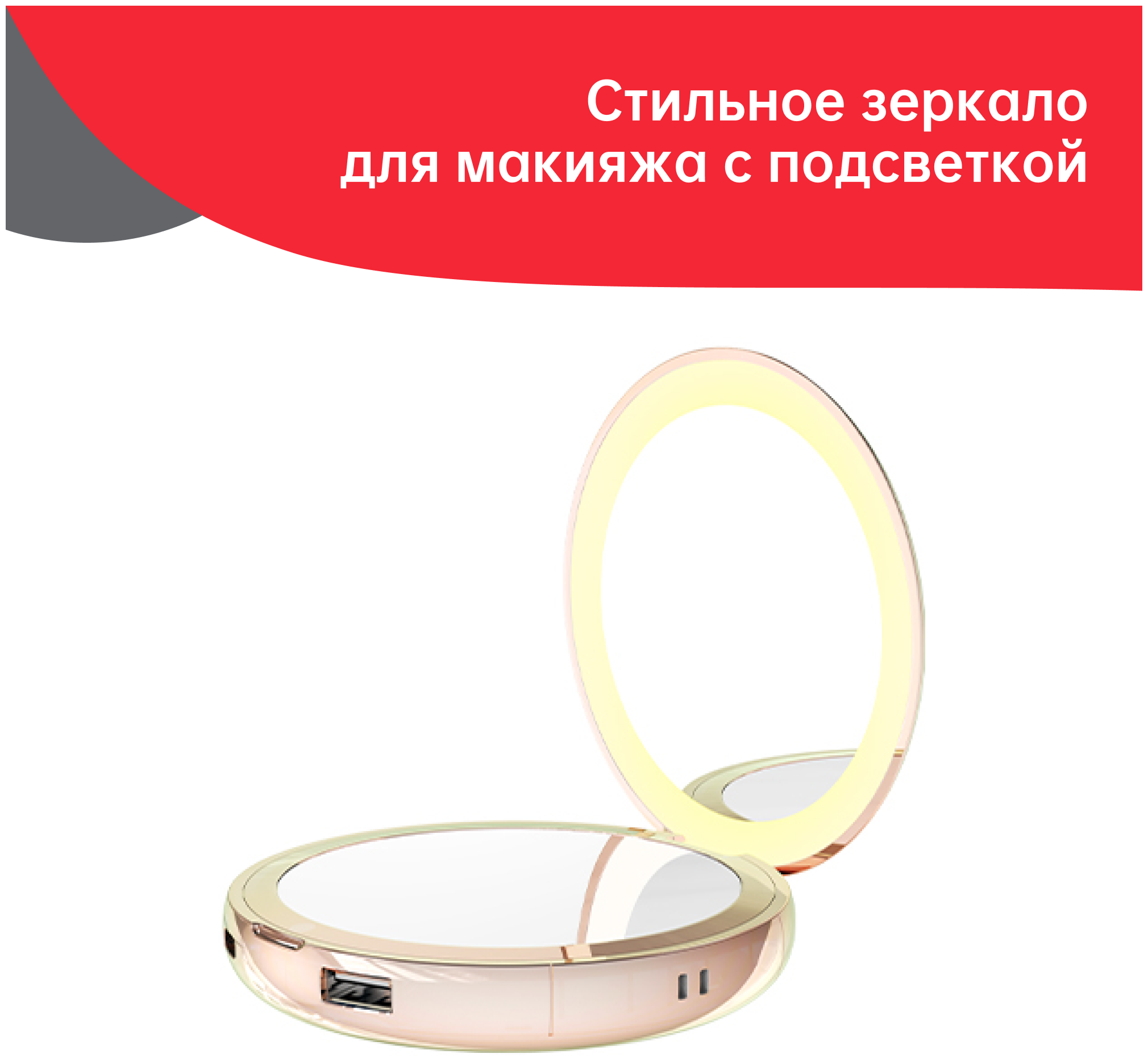Косметическое зеркало Yeelight С20 — модель в корпусе из пластика и металла, окрашенных в перламутровый цвет. Компактные размеры (9,7х2,9 см) и небольшой вес (300 г) позволяют носить аксессуар в кармане или клатче. На одну сторону установлено простое зеркало, на другую — зеркало с трехкратным увеличением, посредством которого можно тщательно проработать детали макияжа. Яркость подсветки можно плавно регулировать при помощи нажатия на кнопку. Устройство работает от аккумулятора емкостью 5000 мА*ч, который обеспечивает до двух месяцев бесперебойного функционирования в автономном режиме. Зеркало можно использовать как внешний аккумулятор для зарядки смартфона или другого девайса. В модели предусмотрена функция «Грелка», которая согреет руки в холодное время года.