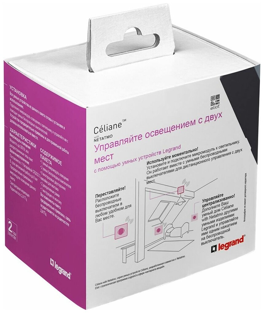 CLN ТИТ Пакет упр.осв.2х м. Набор умных беспроводных выключателей Legrand серия Celiane with NETATMO Цвет Титан. Готовое решение для управления освещением. Состоит: Микромодуль реле 300 Вт 240В + два (67778)