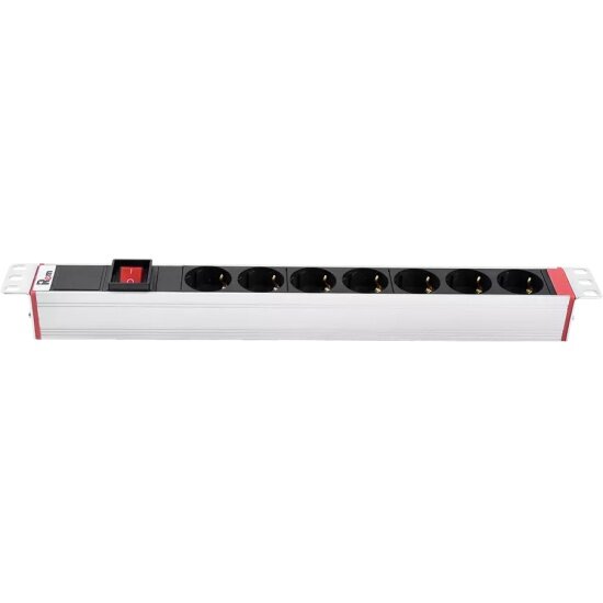 Блок розеток Rem-16 с выкл., 7 Schuko, вход IEC 60320 C20, 16 A, алюм., 19"