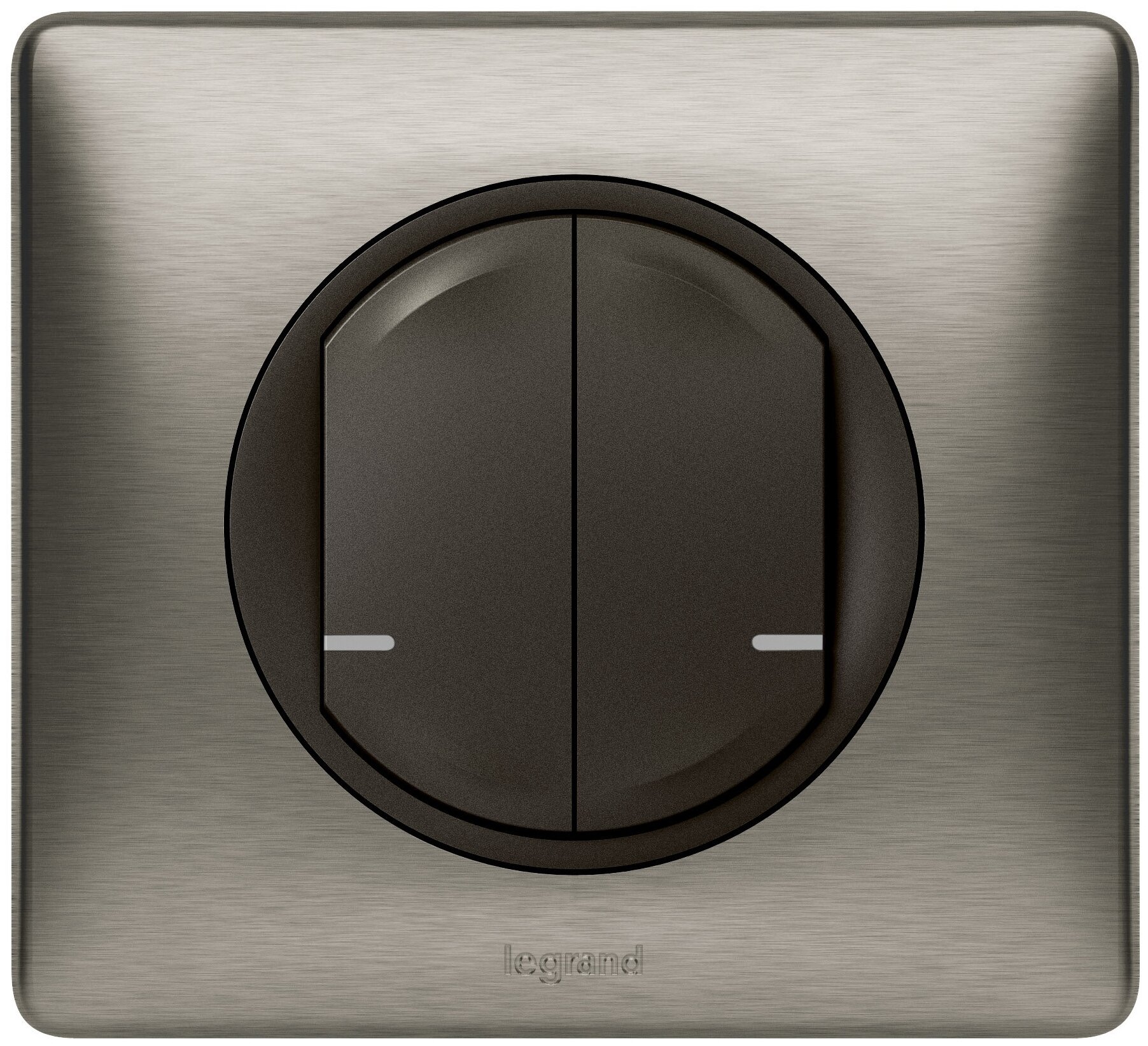 Коллекция умных устройств Celiane with NETATMO. Умный беспроводной выключатель 2-клавишный. Цвет Графит. Рамка Вольфрам.