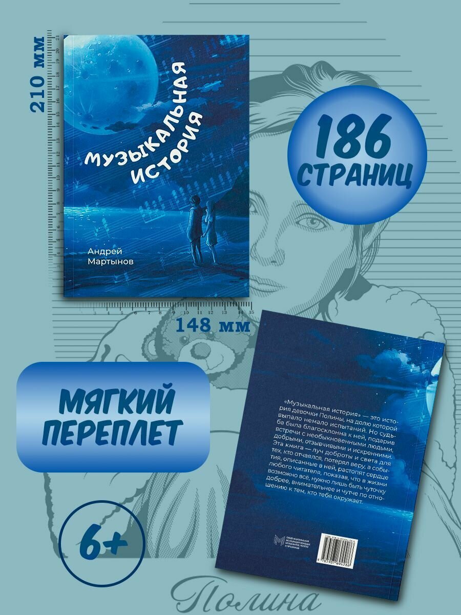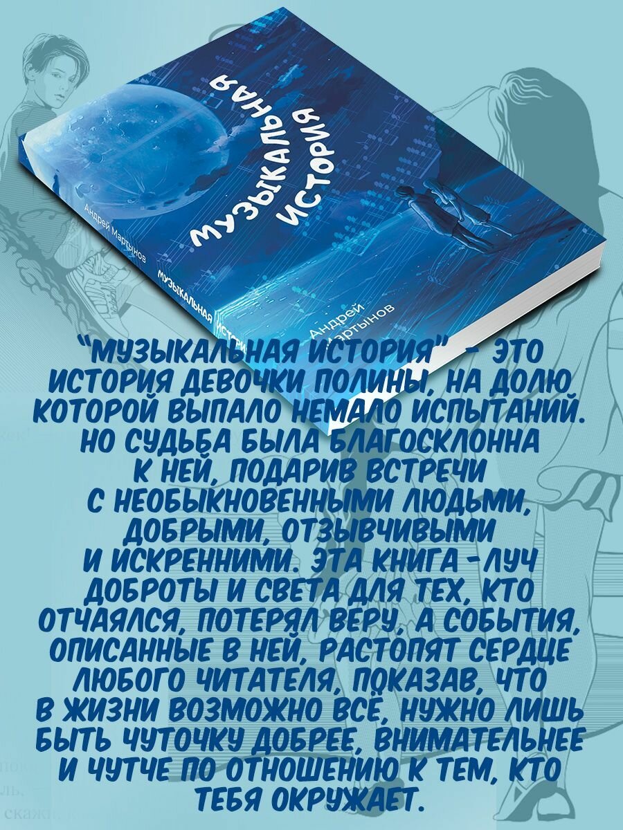 «Музыкальная история» — это история девочки Полины, на долю которой выпало немало испытаний. Но судьба была благосклонна к ней, подарив встречи с необыкновенными людьми, добрыми, отзывчивыми и искренними. Эта книга — луч доброты и света для тех, кто отчаялся, потерял веру, а события, описанные в ней, растопят сердце любого читателя, показав, что в жизни возможно всё, нужно лишь быть чуточку добрее, внимательнее и чутче по отношению к тем, кто тебя окружает.