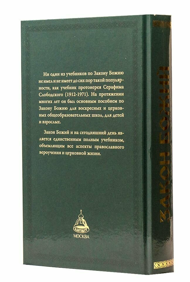 Книга "Закон Божий", составленная протоиереем Серафимом Слободским (1912-1971), выдержала множество изданий. Она более полувека остается основным пособием по изучению Православия для детей и взрослых. Эта книга охватывает все аспекты православного вероучения, нравственности и церковной жизни. В ней в доступной форме изложены все необходимые каждому православному христианину сведения и понятия. Издание адресовано всем, кто знакомит с Православием: учащимся воскресных школ; тем, кто готовится принять Святое Крещение или недавно стал членом Церкви Христовой.