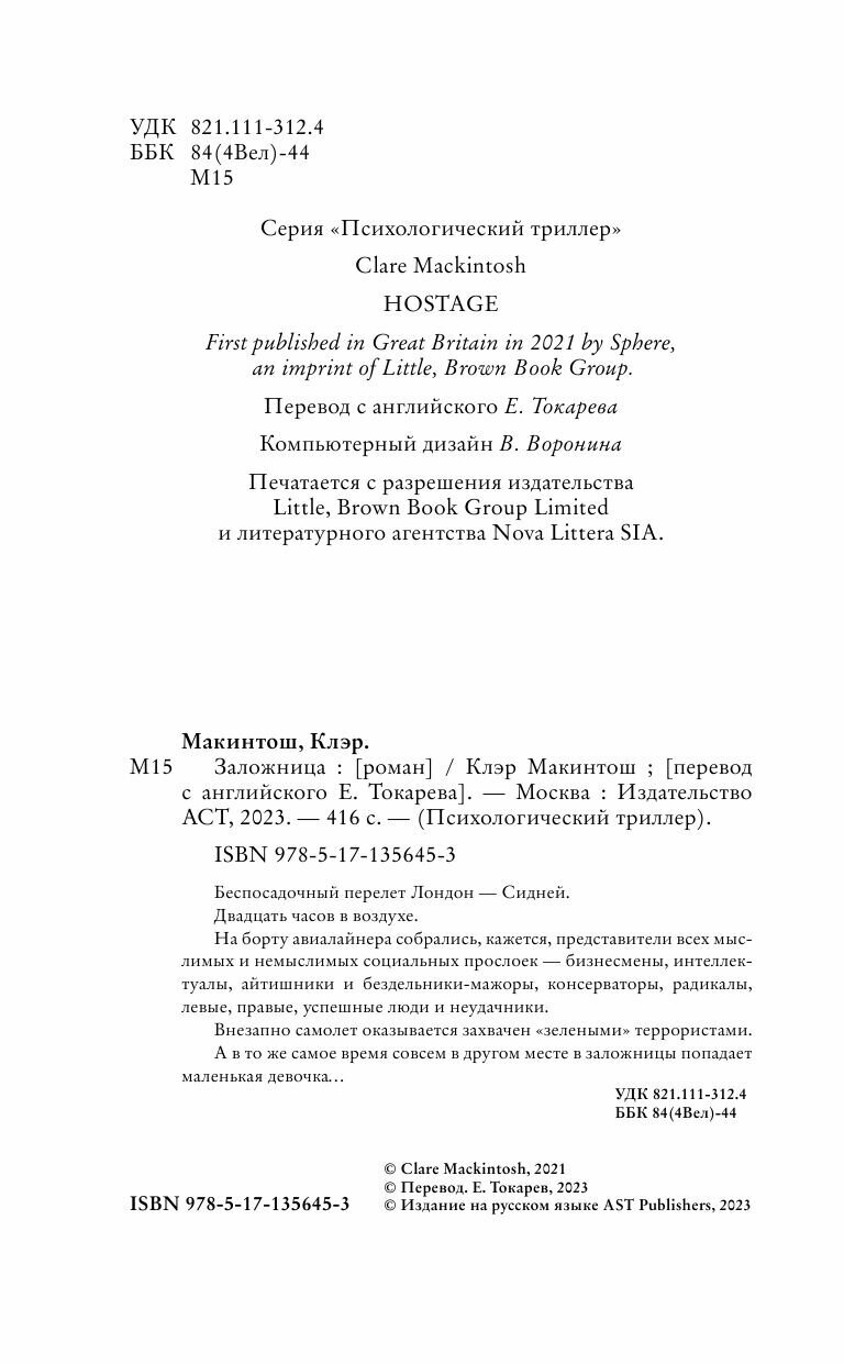 Книга: Заложница (Клэр Макинтош); Издательство АСТ, 2021
