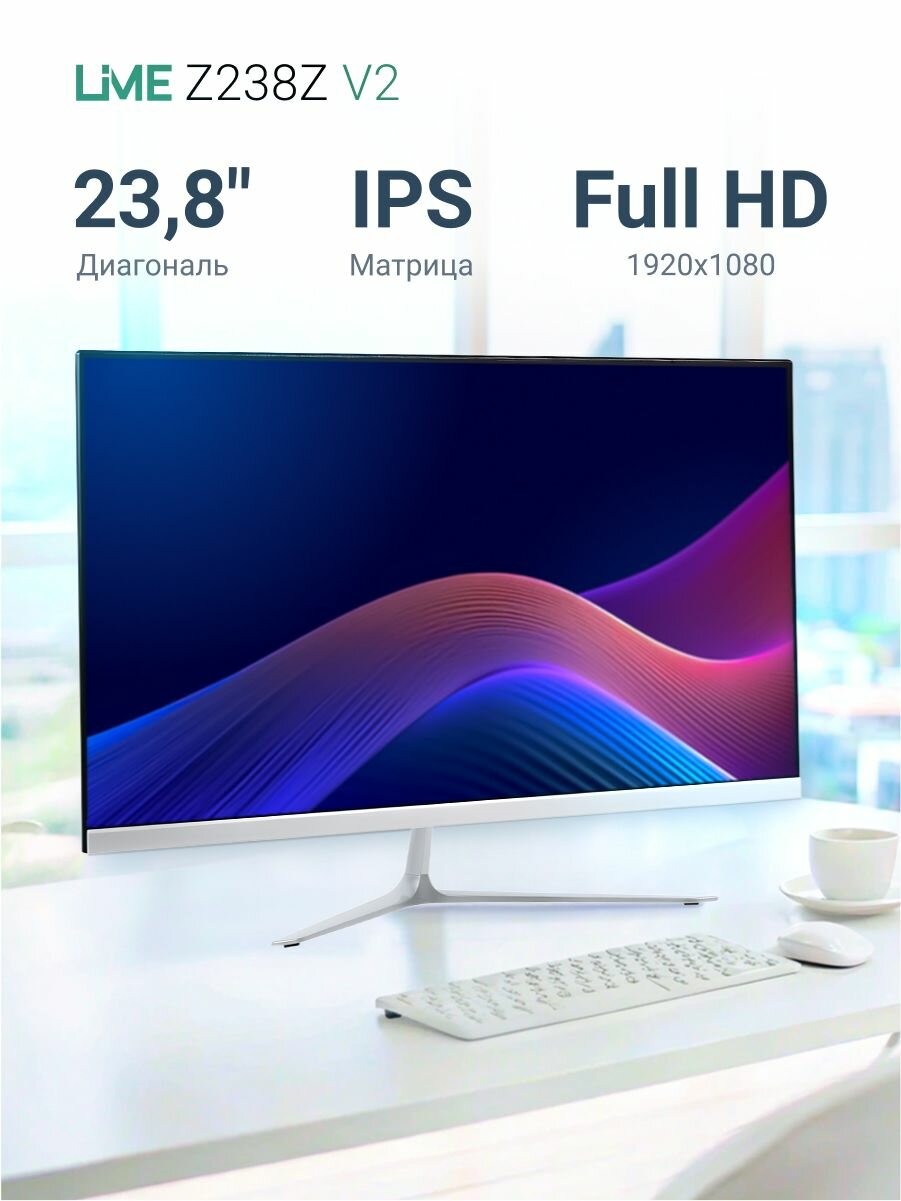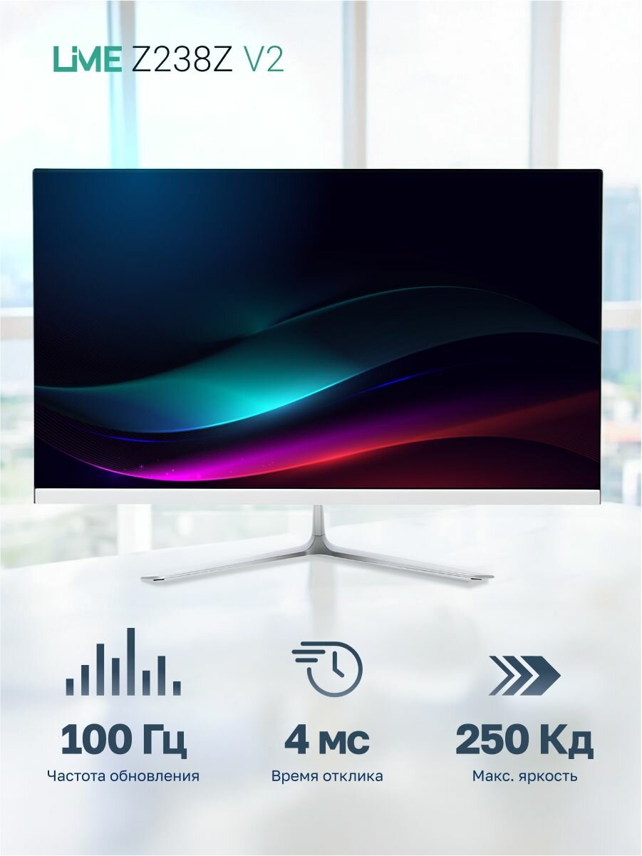 Монитор 238" Lime White (IPS 1920*1080 VGA+HDMI+DP+Audio out +DC 4 ms 178°/178° 250 cd/m 1000: (100M:1) 75Hz Flat) Z238Z