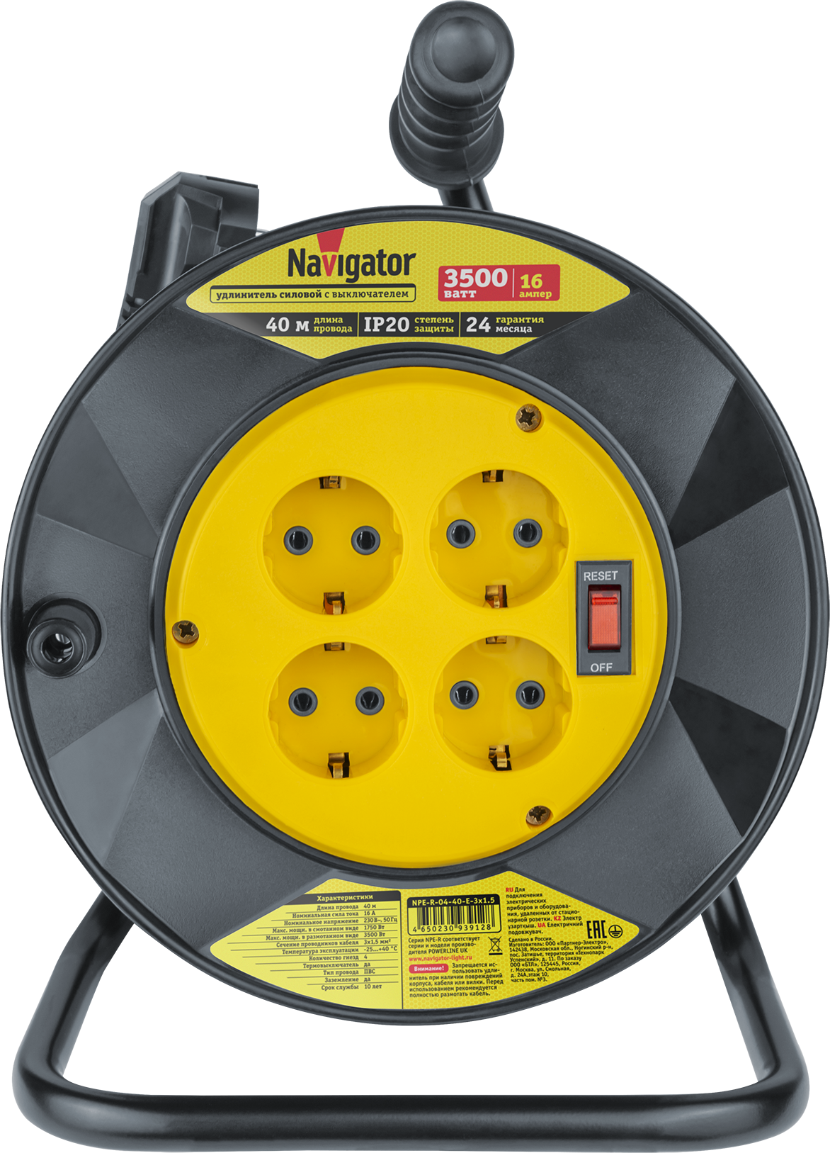 На сегодняшний день товар «удлинитель на катушке NAVIGATOR 4 гнезда ПВС с/з с выкл IP20 3х15мм 16A 30м (93911)» можно купить с кешбеком в 2 магазинах: E2e4online, Яндекс.Маркет