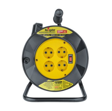 удлинитель на катушке NAVIGATOR 4 гнезда ПВС с/з с выкл IP20 3х1мм 10A 20м (93907)